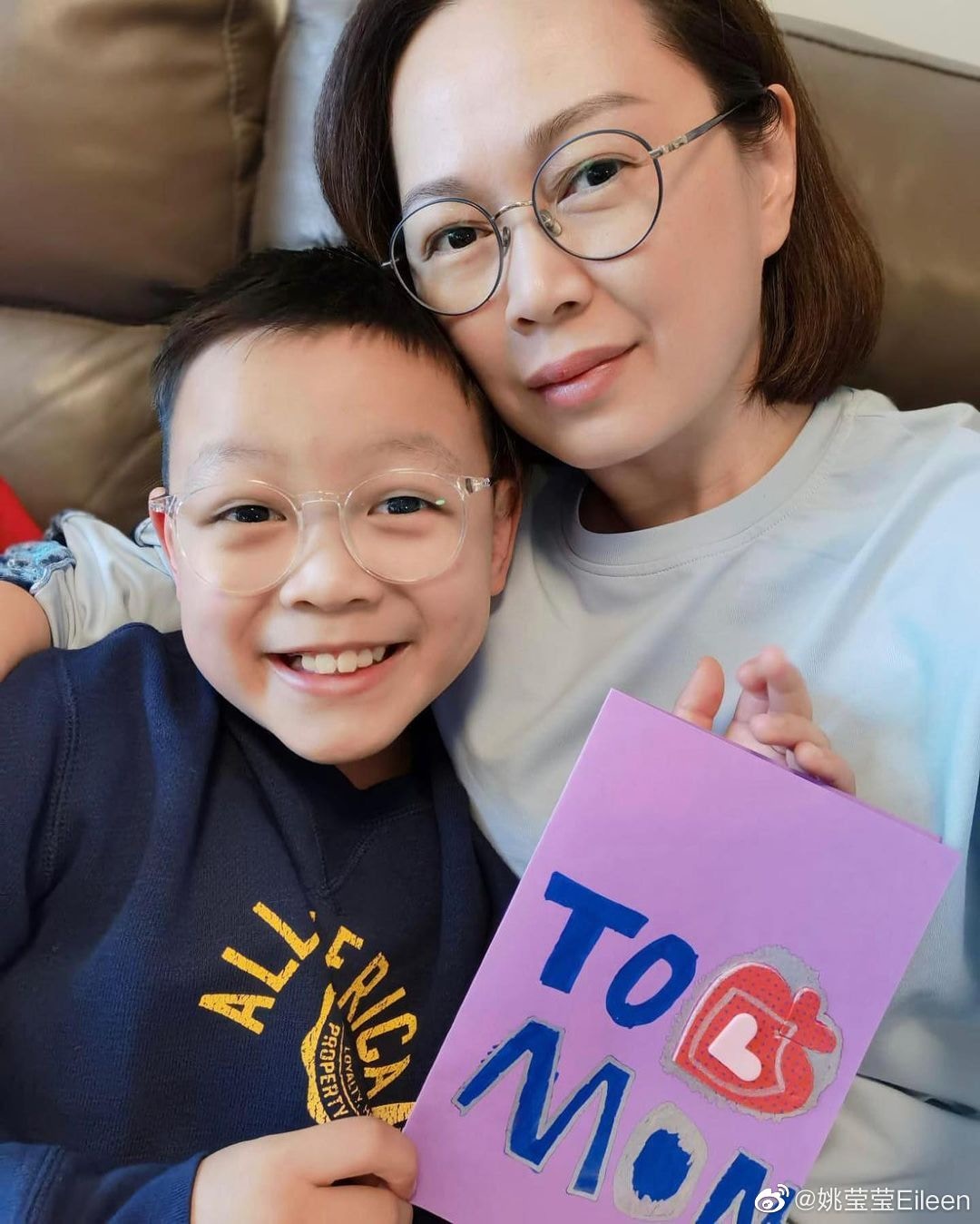 兩母子好似樣。(姚瑩瑩微博圖片)
