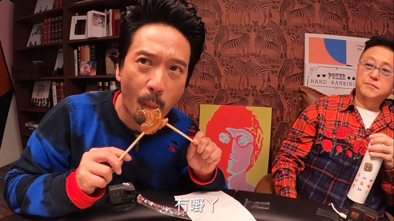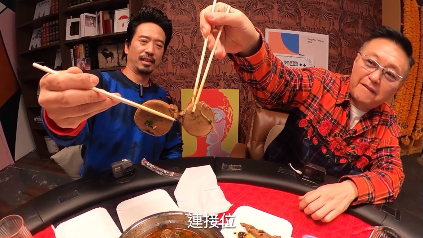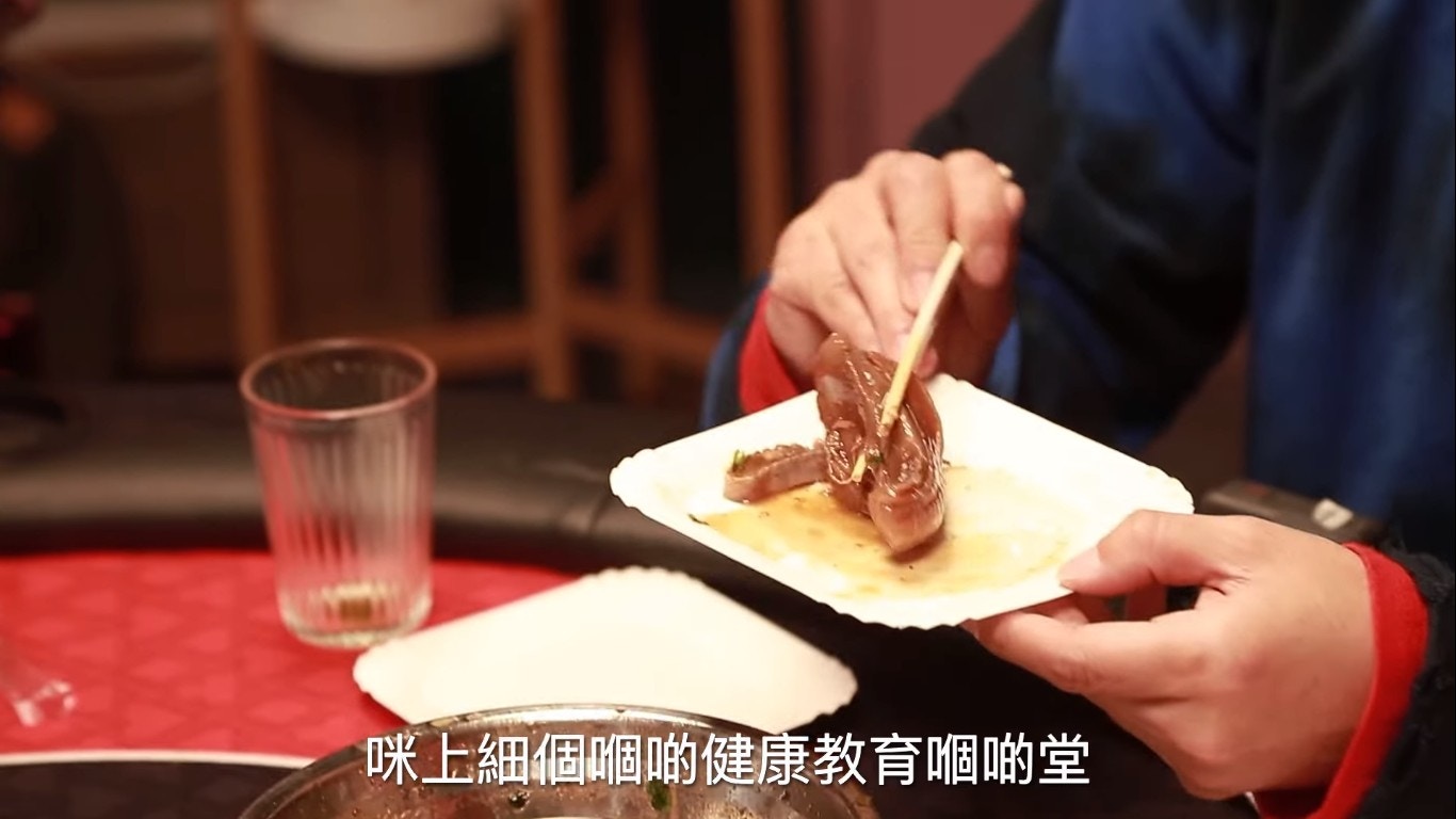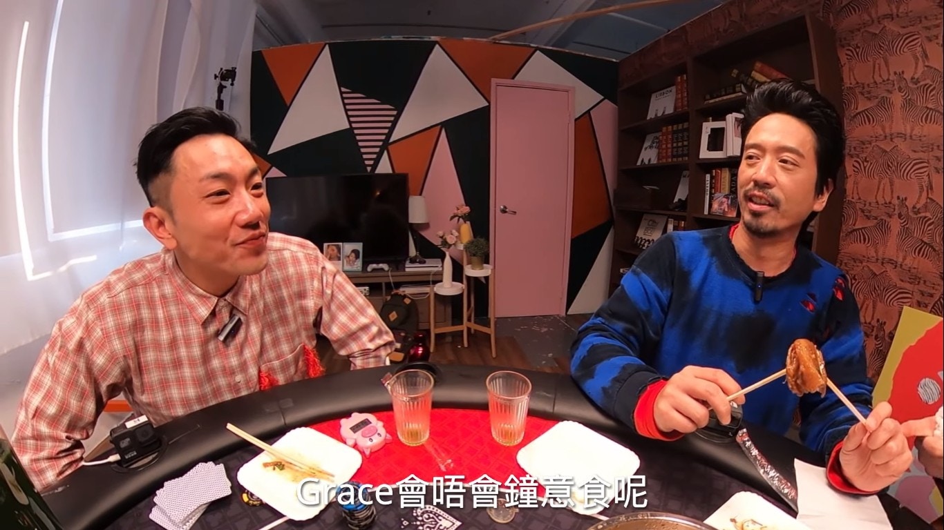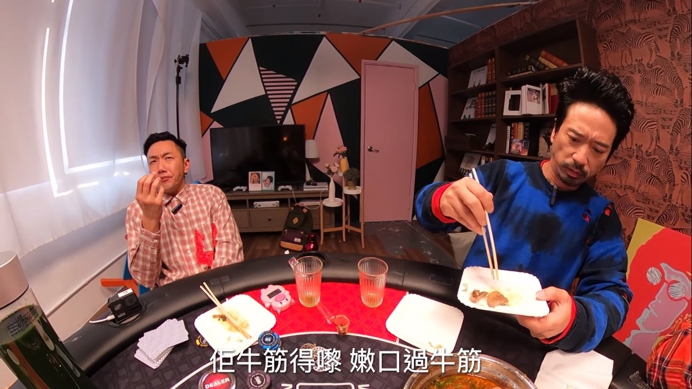 鄧麗欣睇人食「牛三寶」都睇得好開心。(YouTube/@Round Table Poker)
