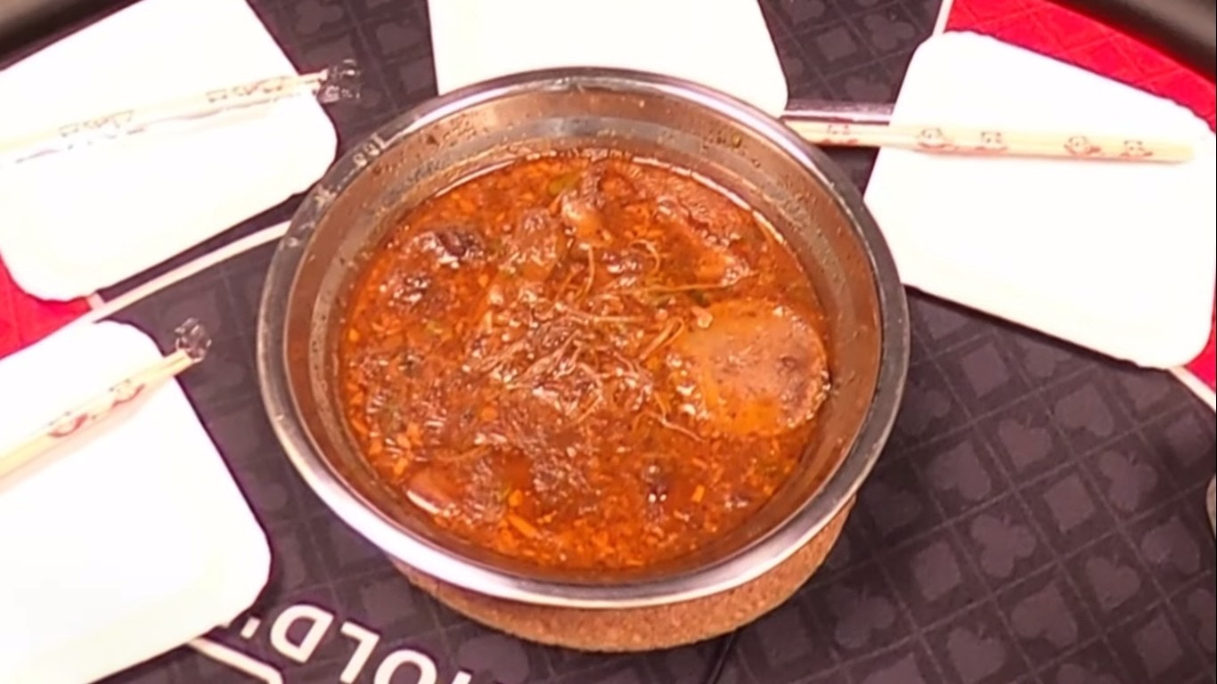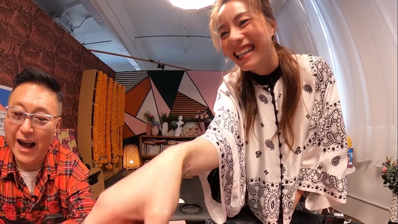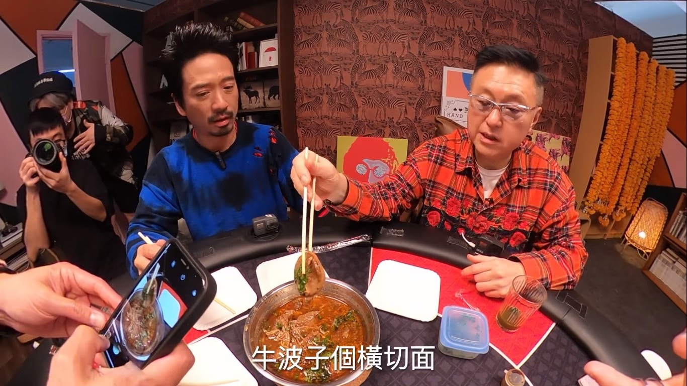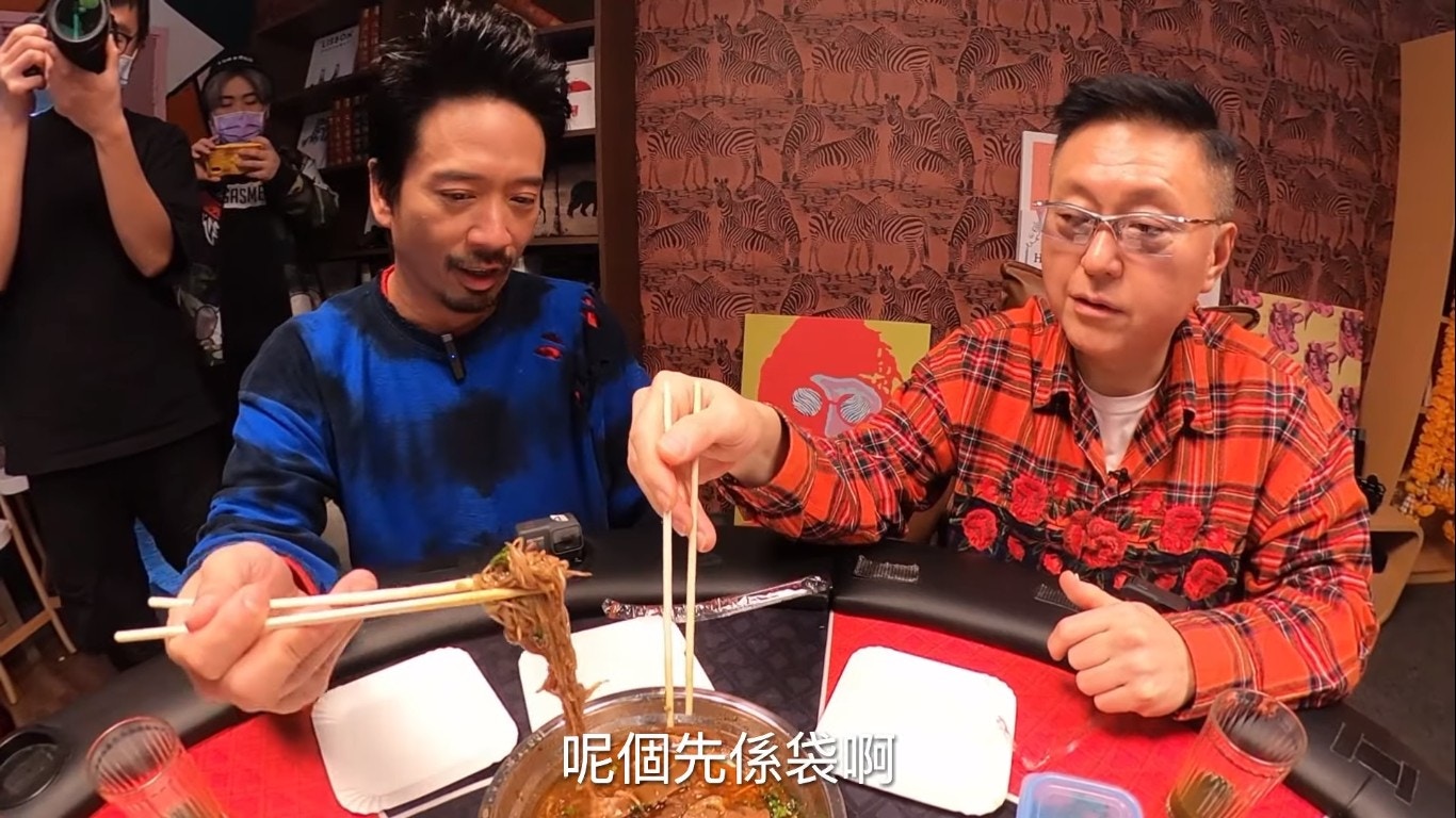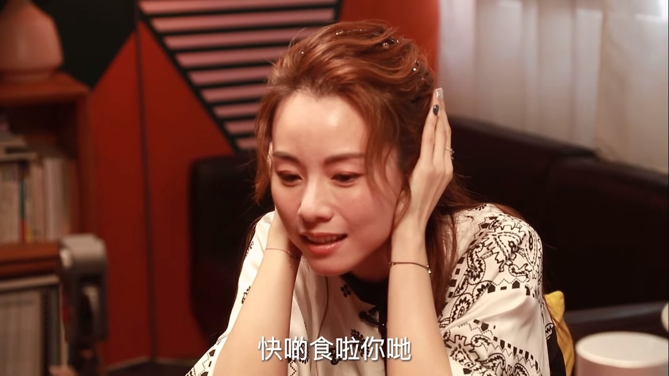 鄧麗欣睇人食「牛三寶」都睇得好開心。(YouTube/@Round Table Poker)