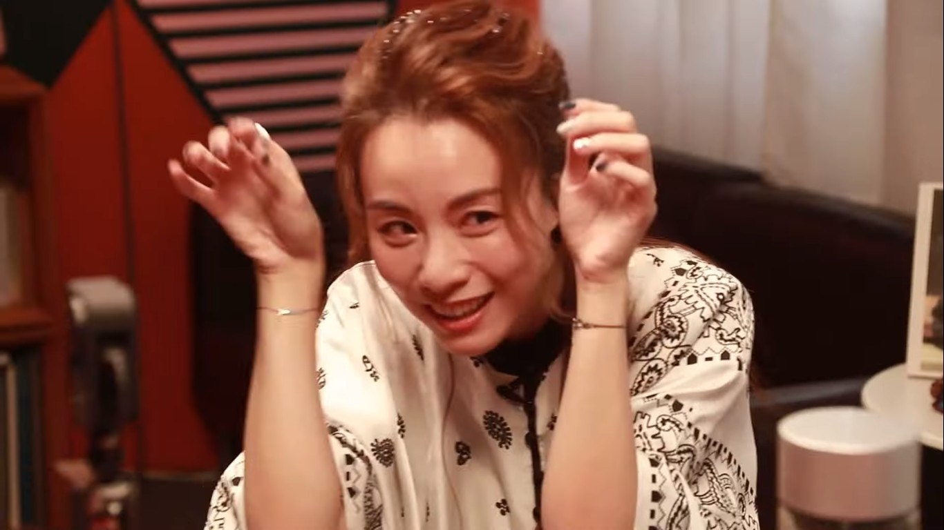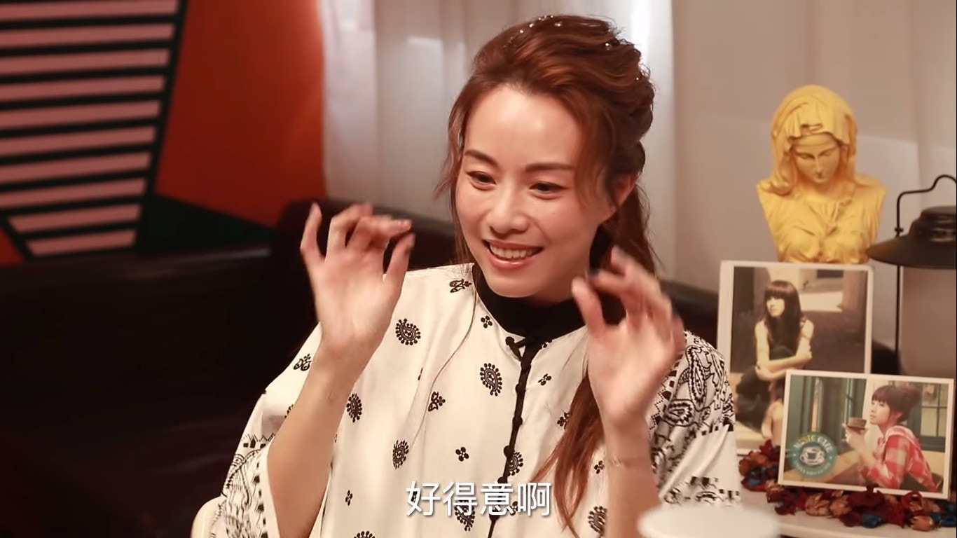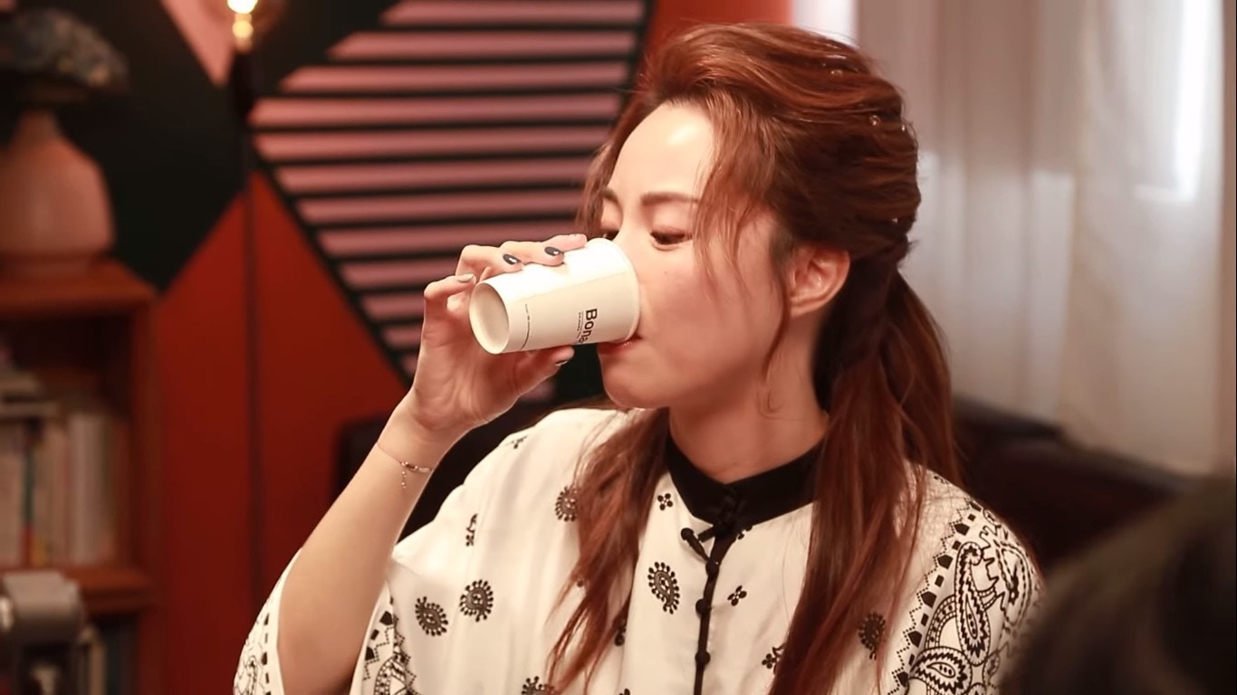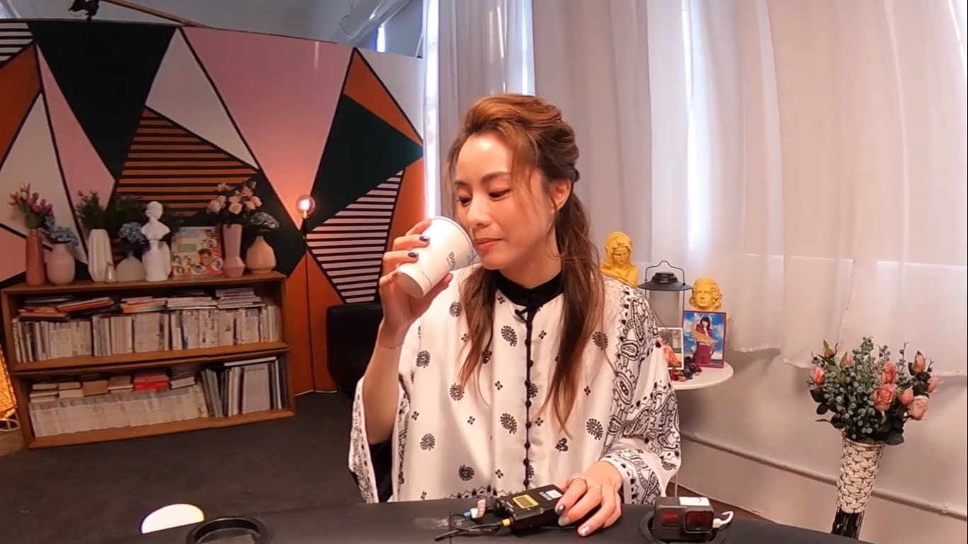 鄧麗欣試飲芫荽汁。(YouTube/@Round Table Poker)