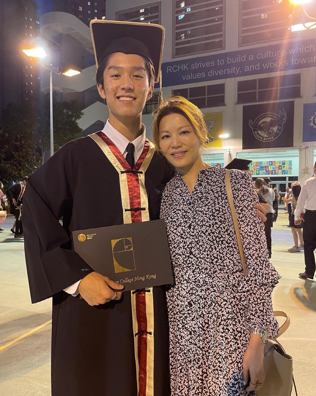 康子妮早前貼出林寶高中畢業照,他就讀於私立國際學校啓新書院。(IG@ukelily)