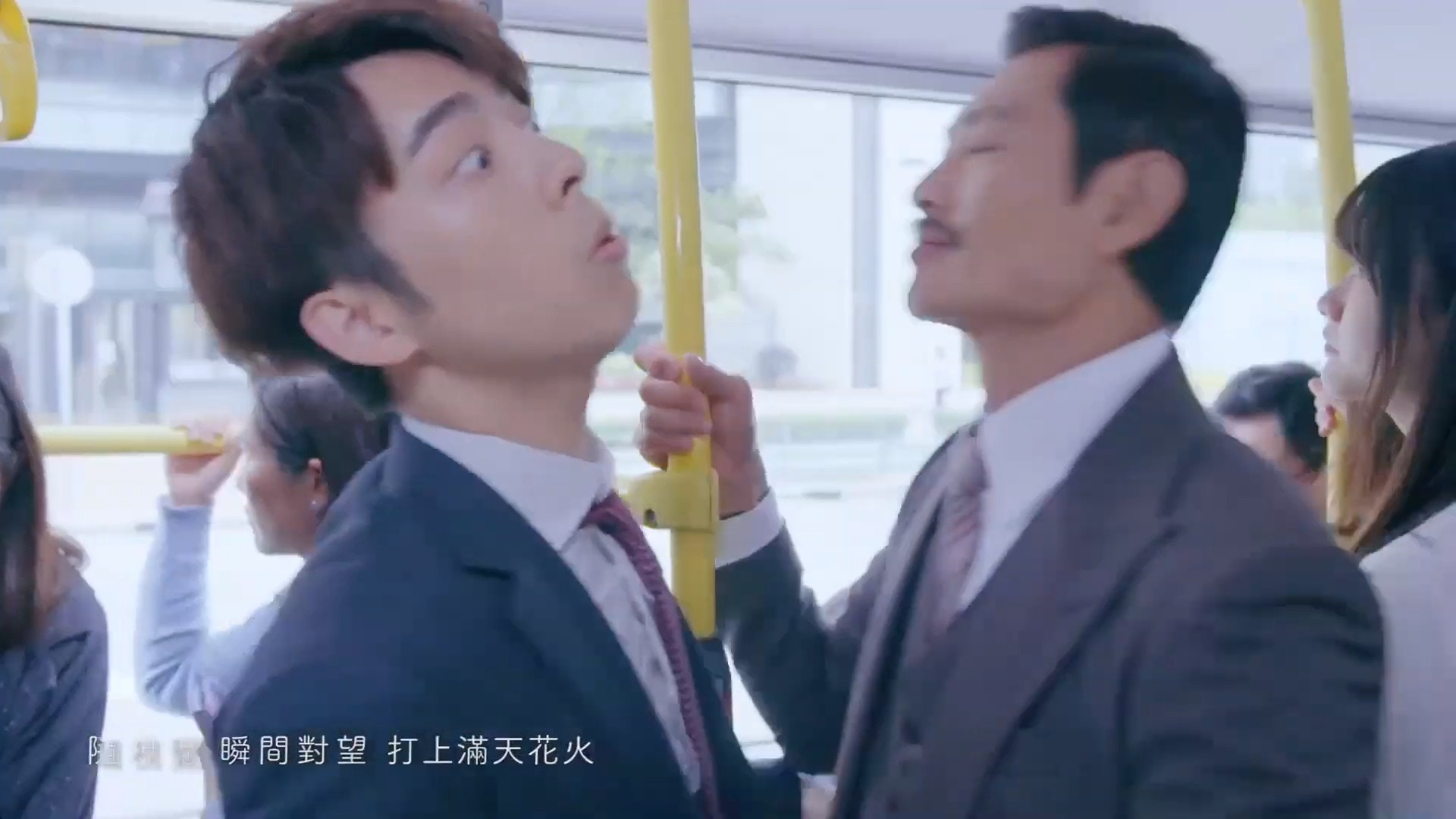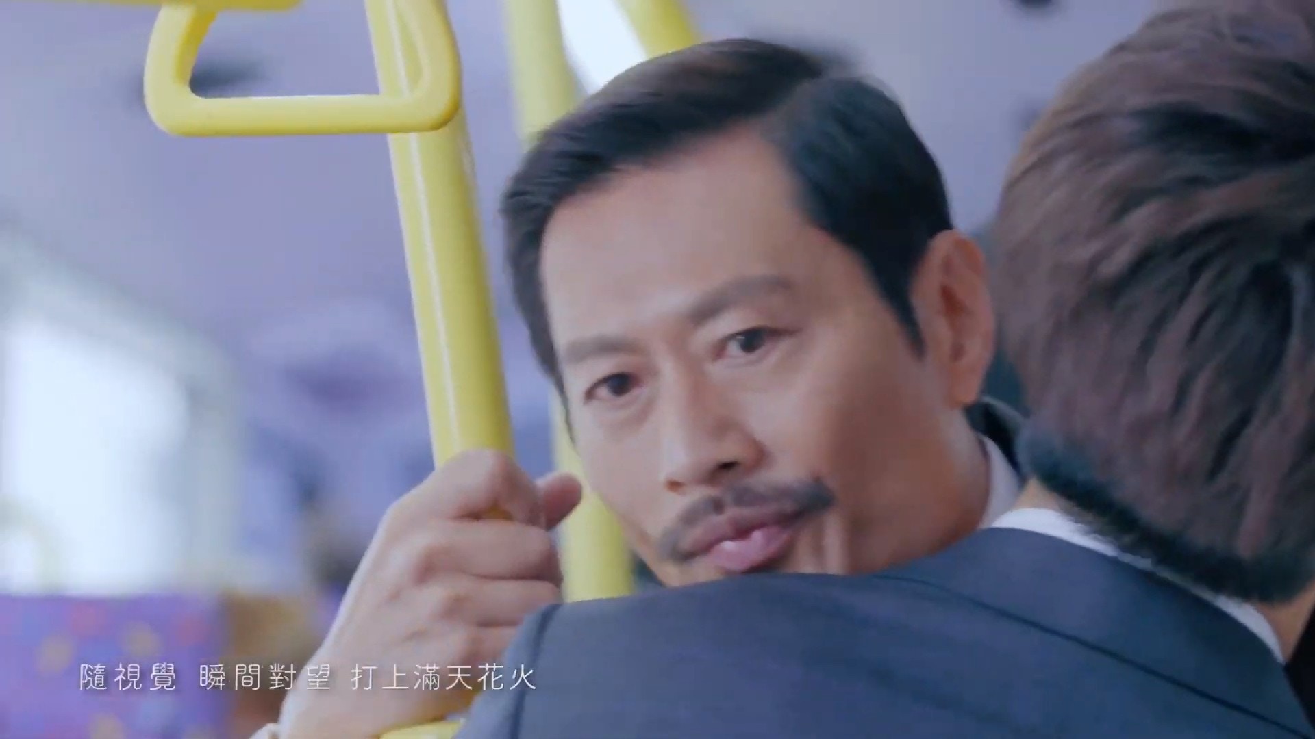 Edan在巴士上被誤會非禮女乘客,黃德斌出面為他解圍。巴士突然急剎,Edan與黃德斌意外擁抱。(劇照)