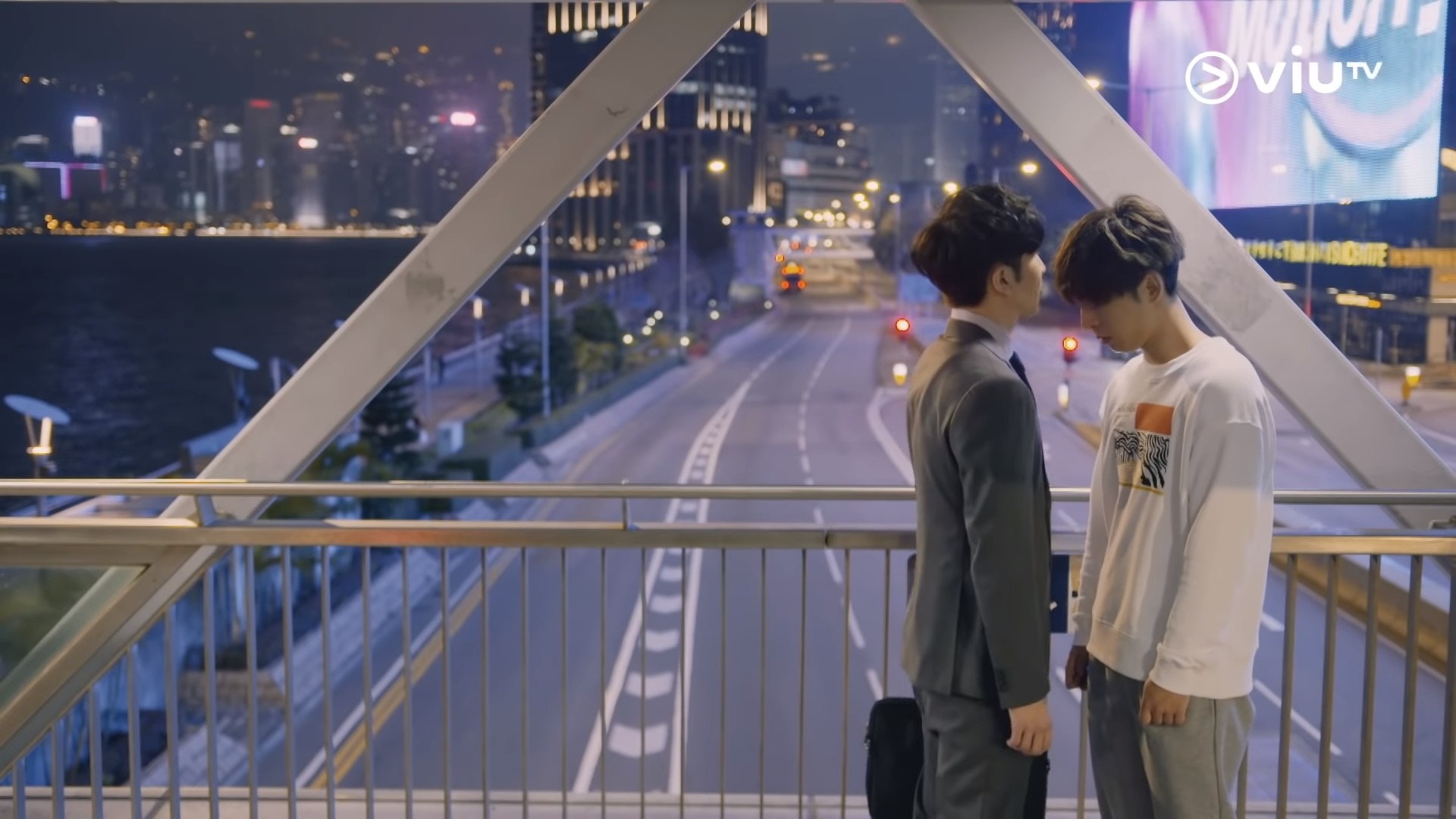 Anson Lo和Edan在天橋上亦上演這一幕。(影片截圖)