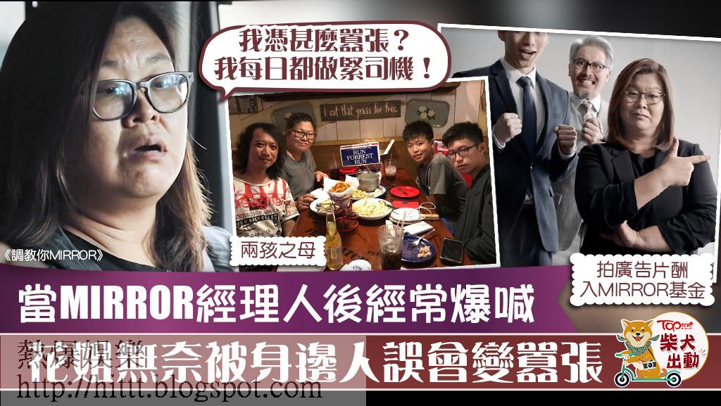 昨晚《調教你MIRROR》梁祖堯準備一段花姐剖白的影片給MIRROR成員看,更大爆花姐在成為經理人後經常爆喊,因為把很多工作事情攬上身,導致犧牲和家人的相處時光令老公有微言。