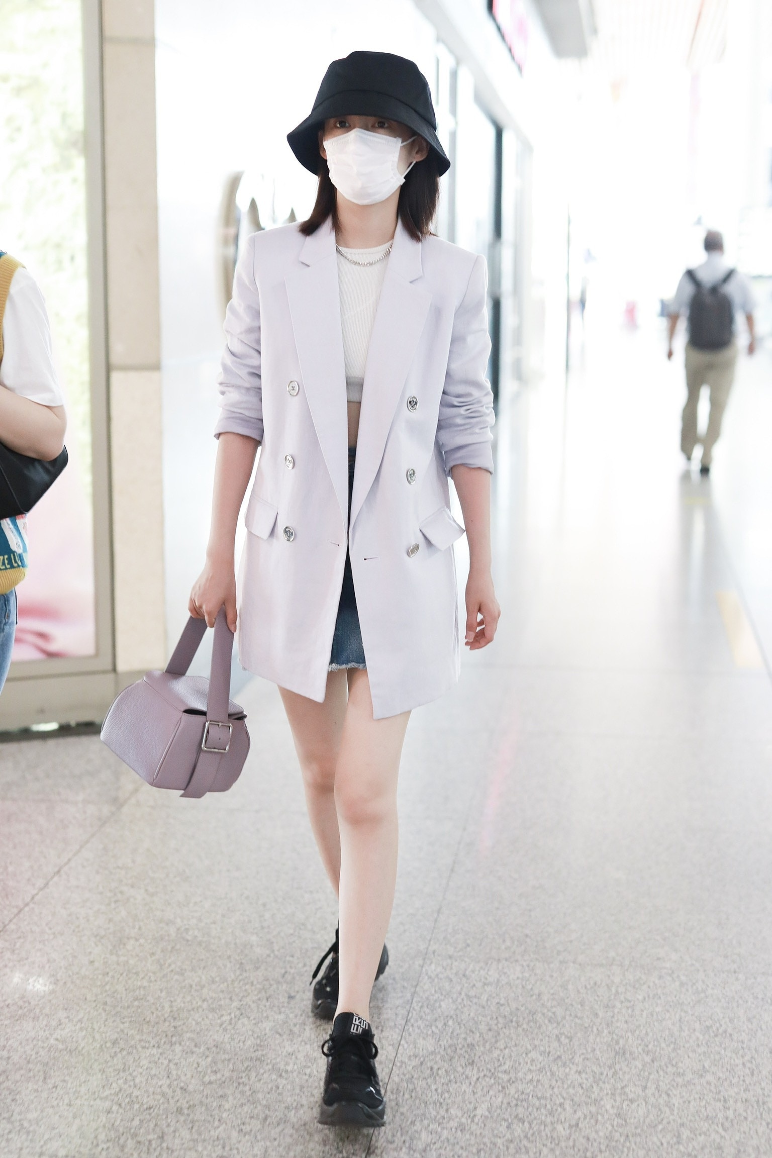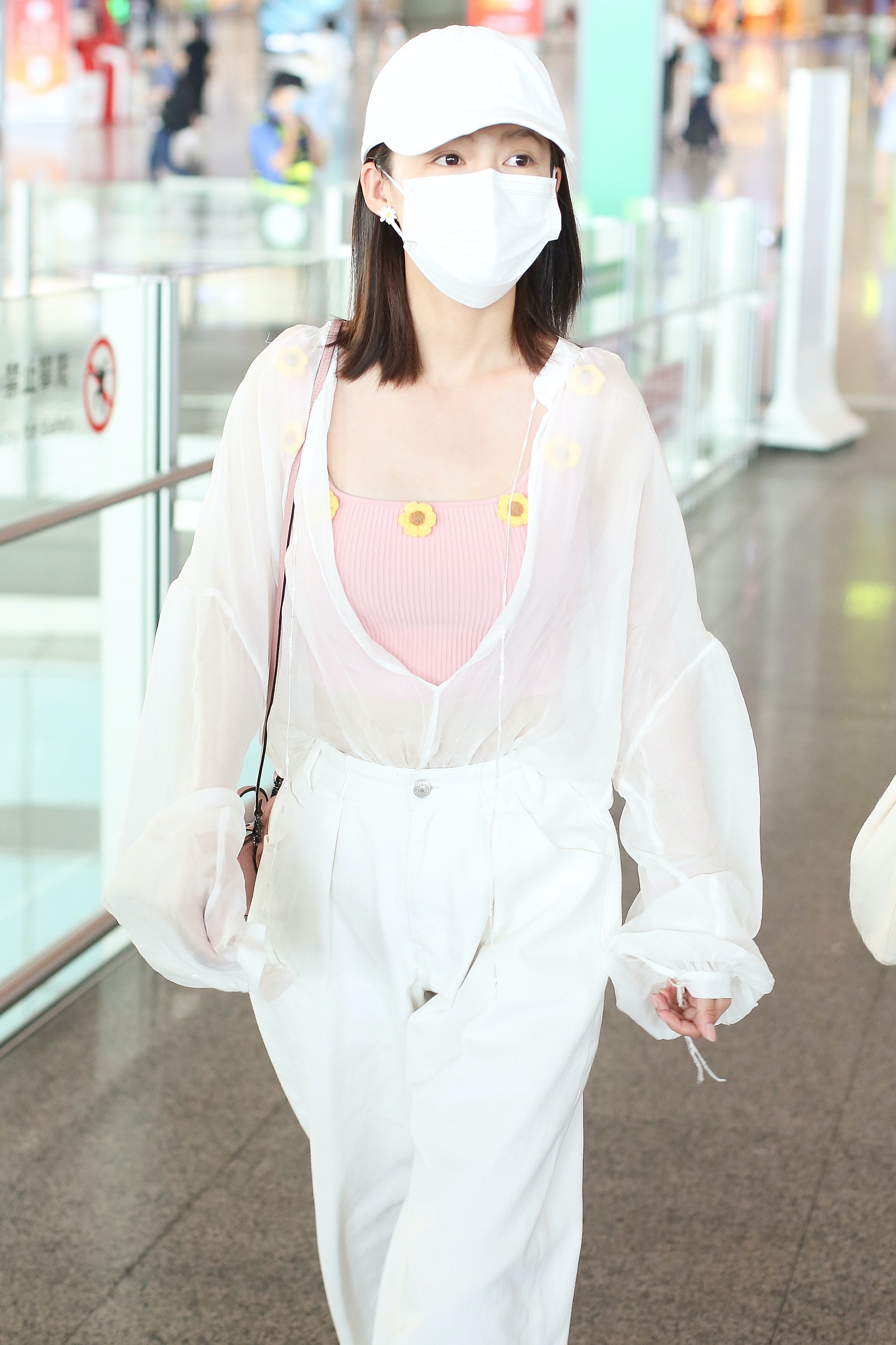 李沁在機場的神態,充滿少女感。(視覺中國)