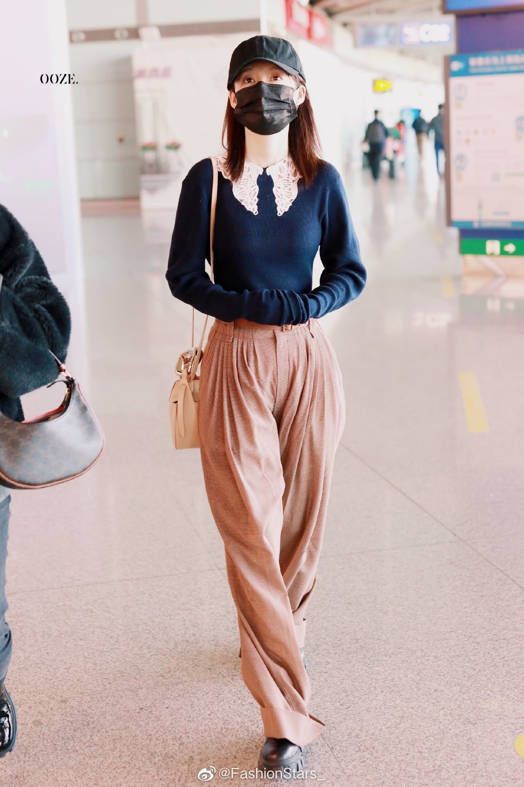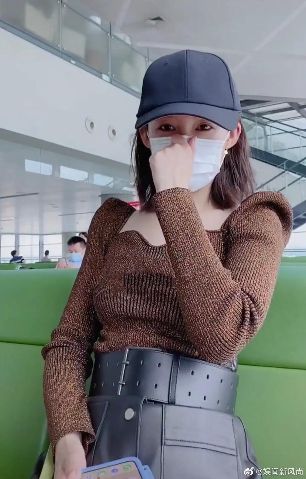 李沁在上海機場現身,示範優雅坐姿。(娛聞新風尚微博)