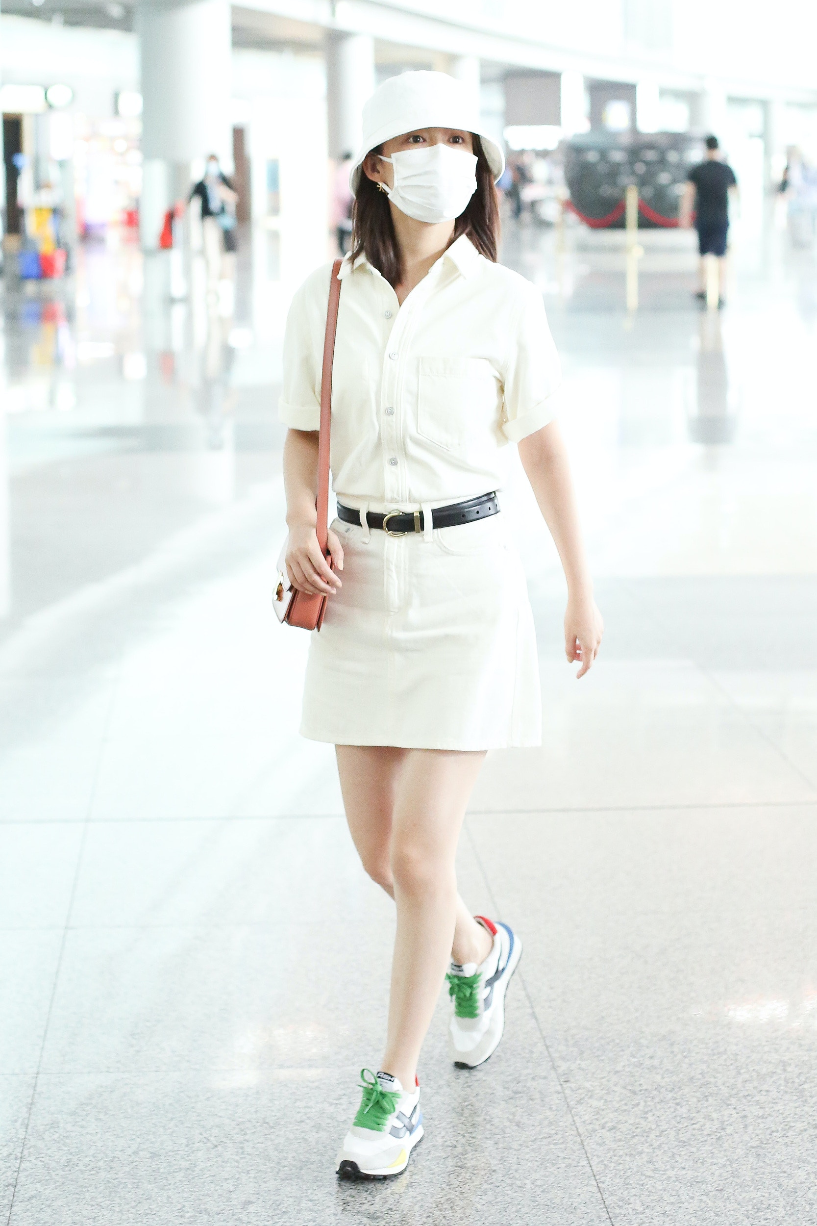 李沁仿如鄰家女孩打扮,繼續大曬白滑長腿。(視覺中國)