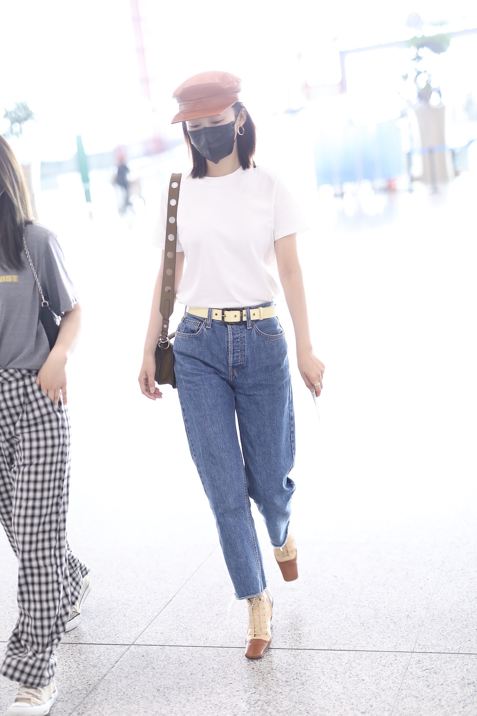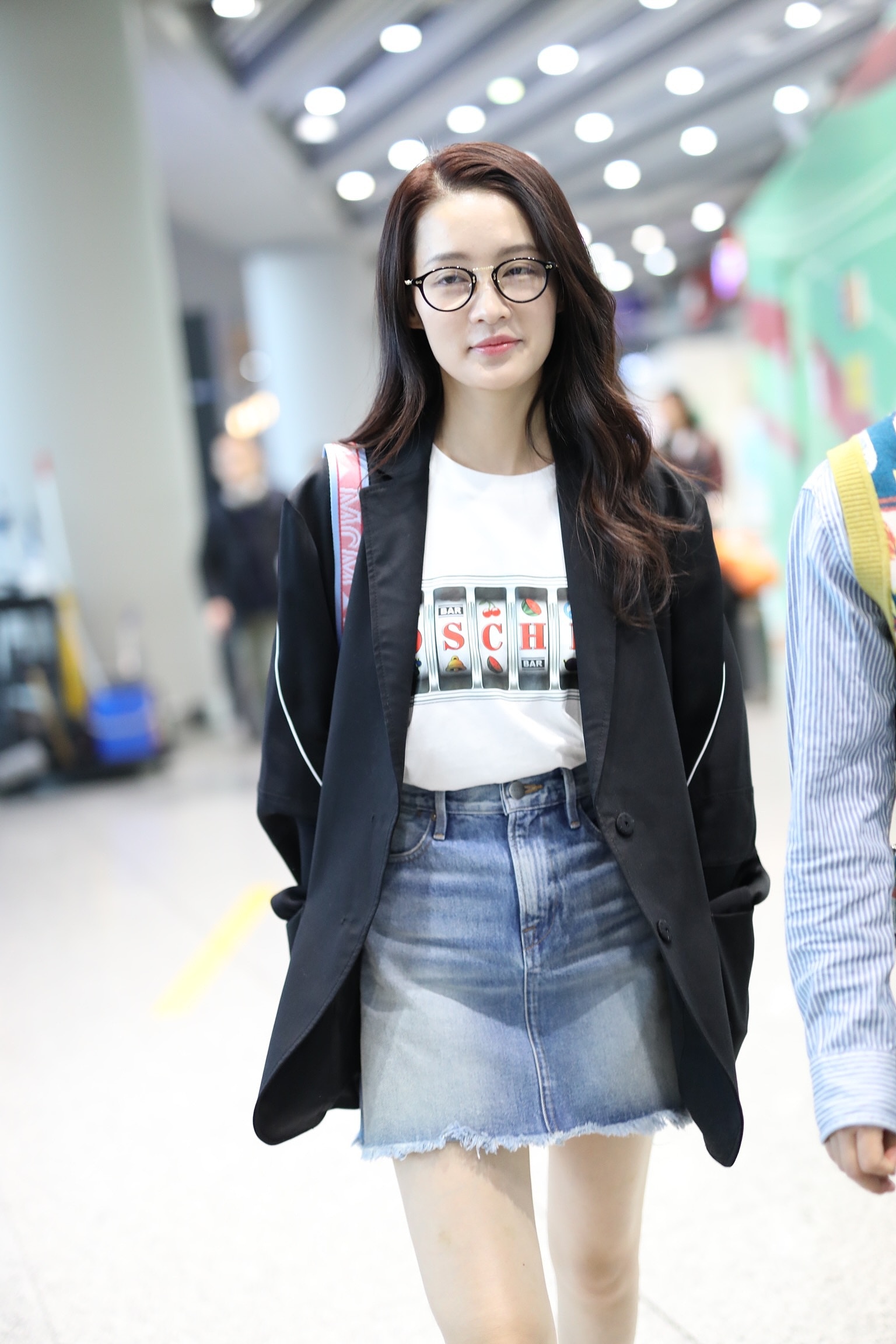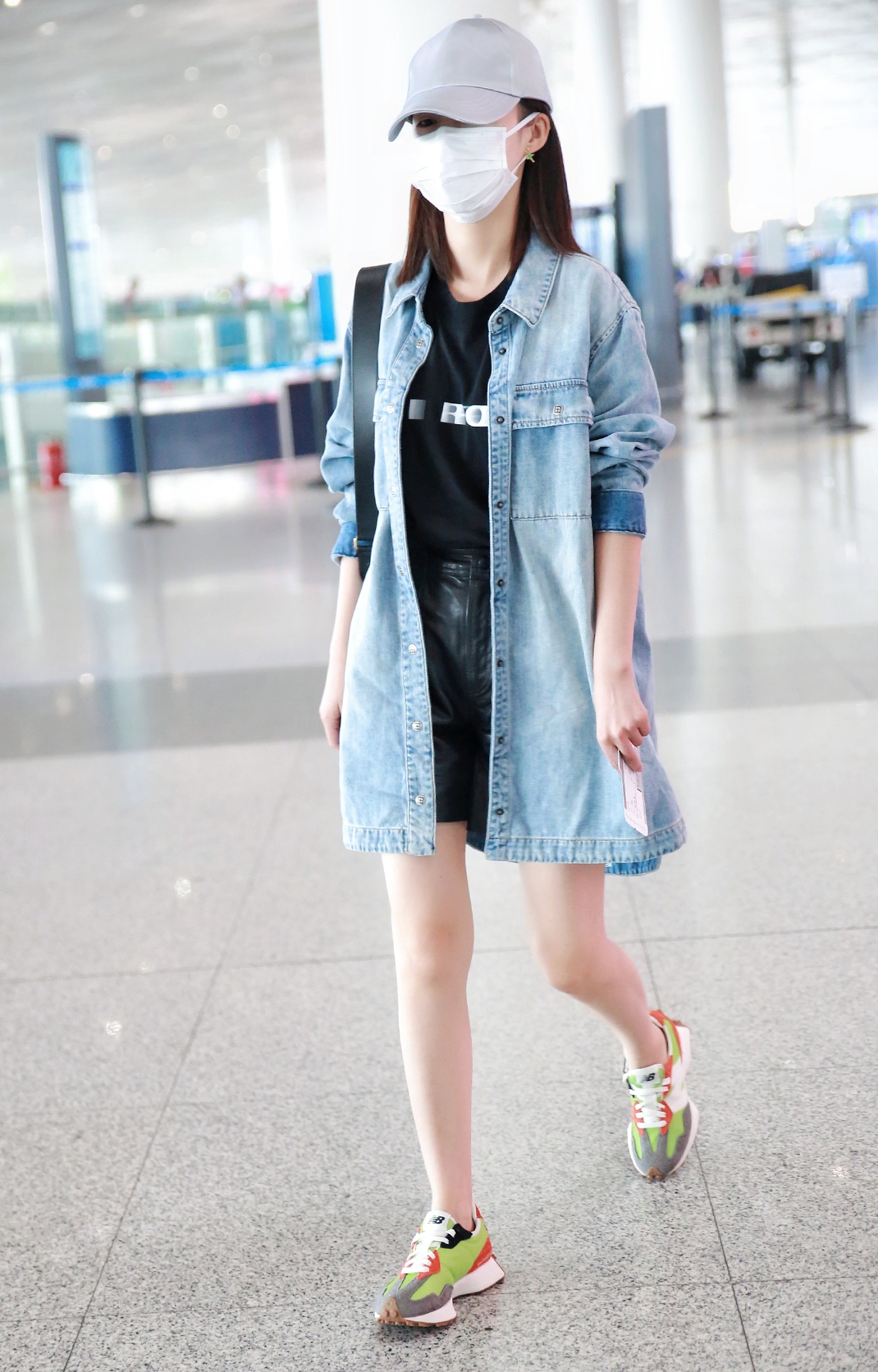 李沁在上海機場現身,示範優雅坐姿。(視覺中國)