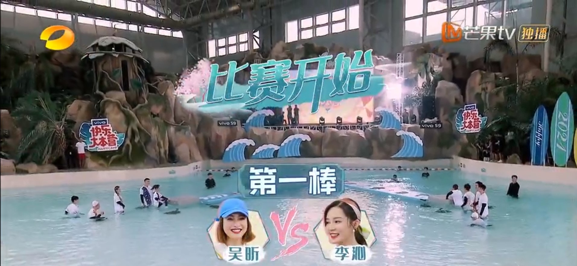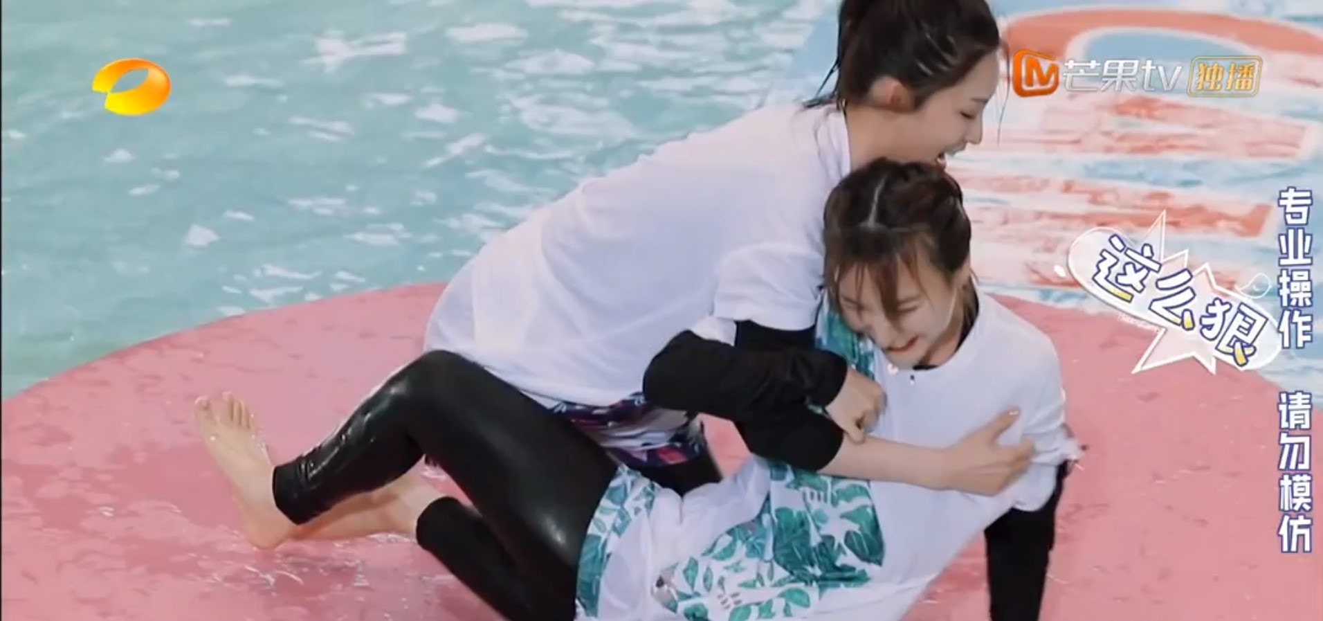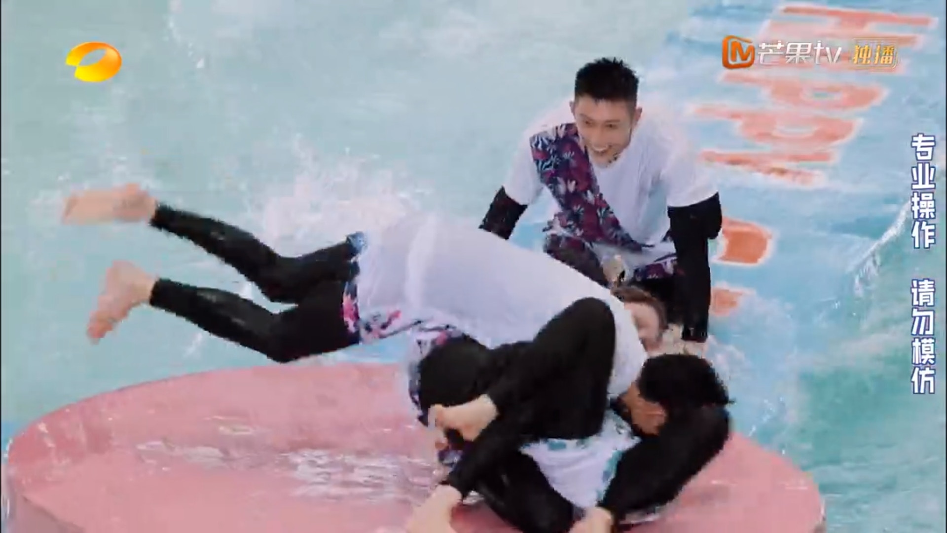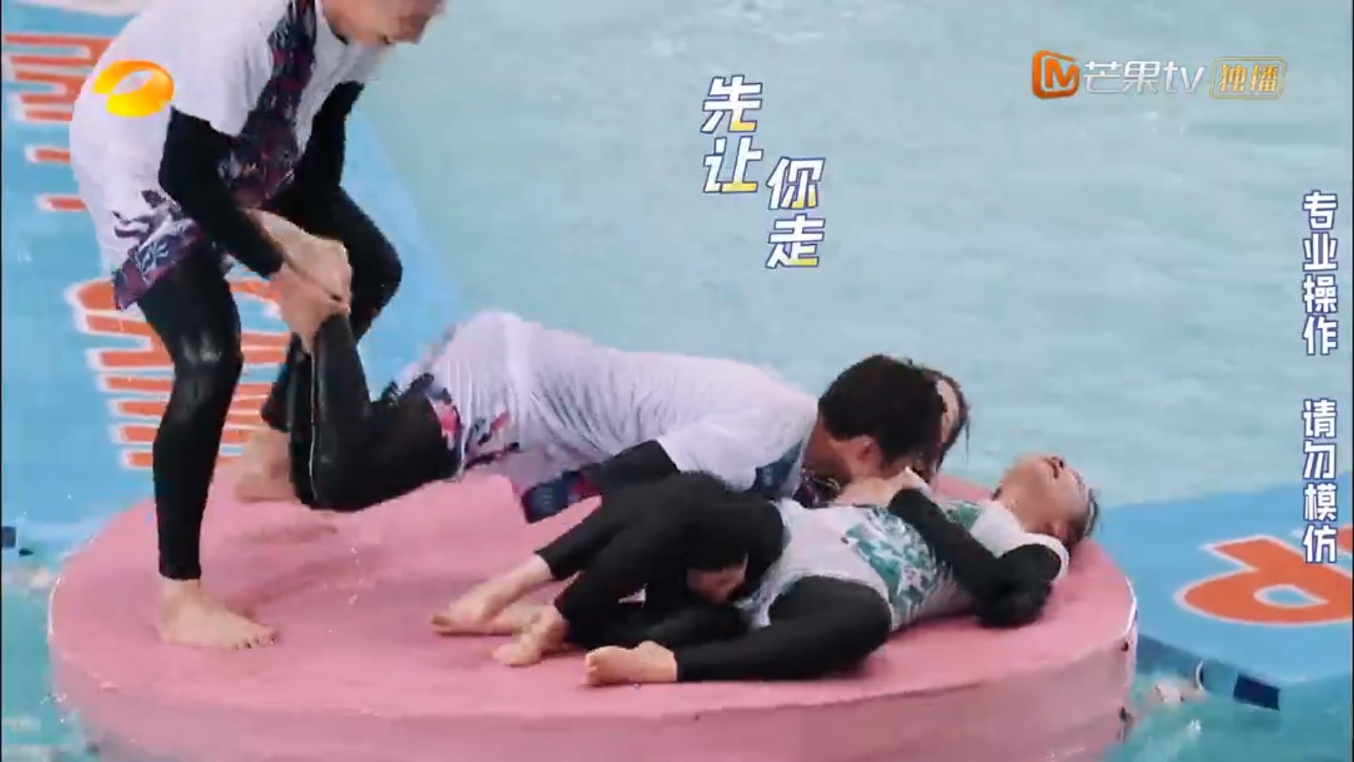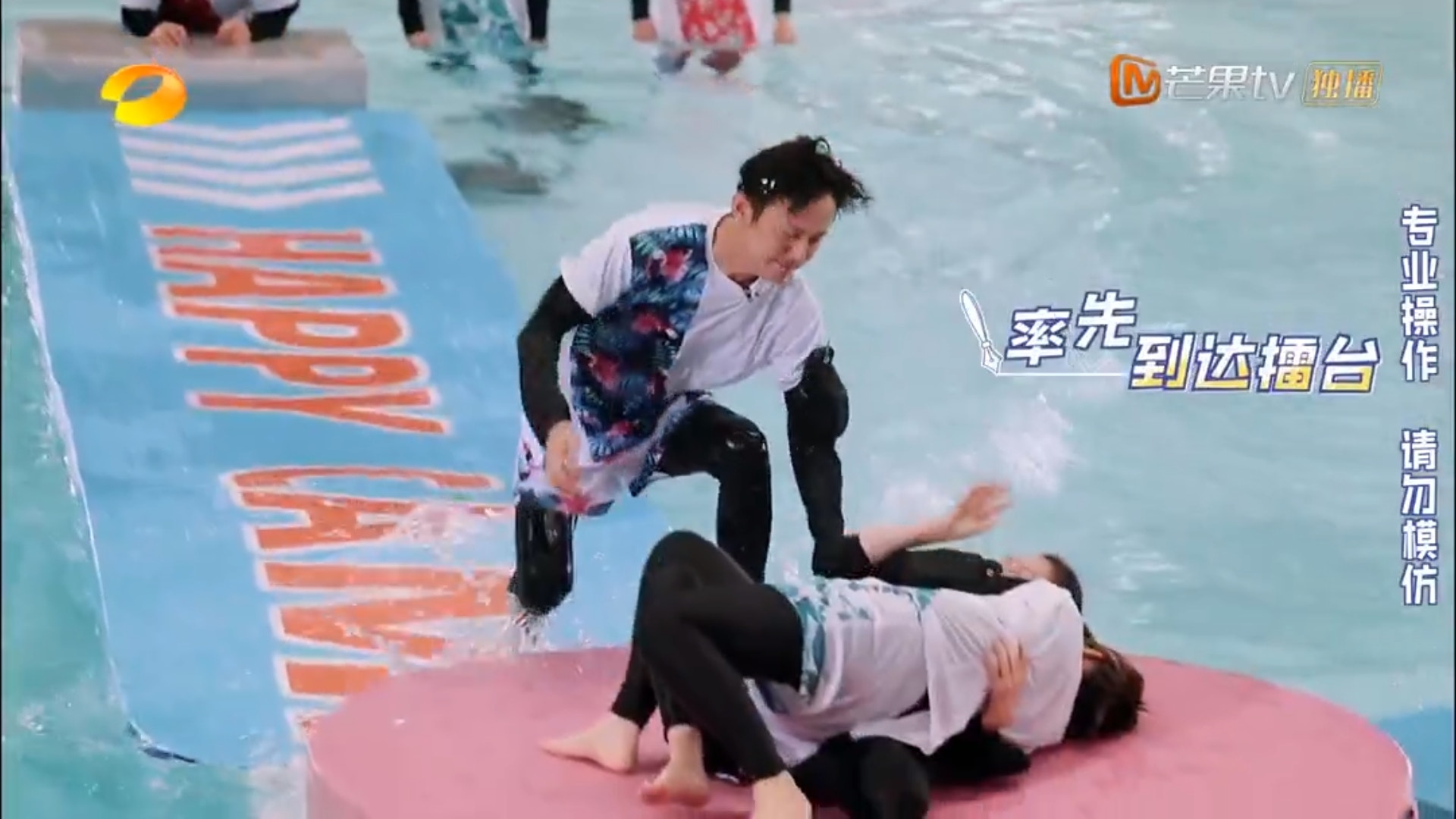 節目中水上遊戲要互相推對手落水。(影片截圖)