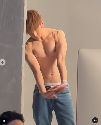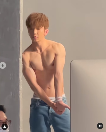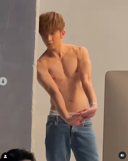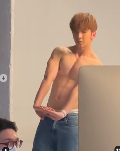 有別於平日活動上的密實形象,教主半裸上陣大曬腹六嚿腹肌。(IG/ @ansonlht)