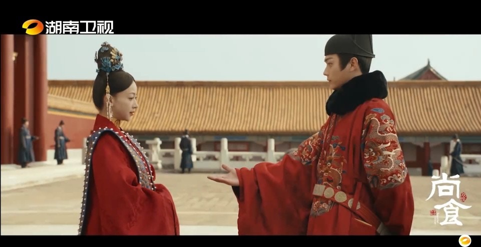 據《尚食》播放的最新預告片看,吳謹言在宮中的尚食局擔任宮女,主要從事廚務工作,見她身穿白色廚師服對食材嚴格挑選,又為皇太子朱瞻基(許凱飾)進侍膳食,二人從而相識相愛最終走在一起,最後一幕他們穿起大紅袍手牽手有情人終成眷屬,吳謹言最終成為太子嬪到貴妃,從一位女官成為君主的伴侶,過程中面臨許多宮中挑戰,絕對是另一種類型的宮鬥劇。