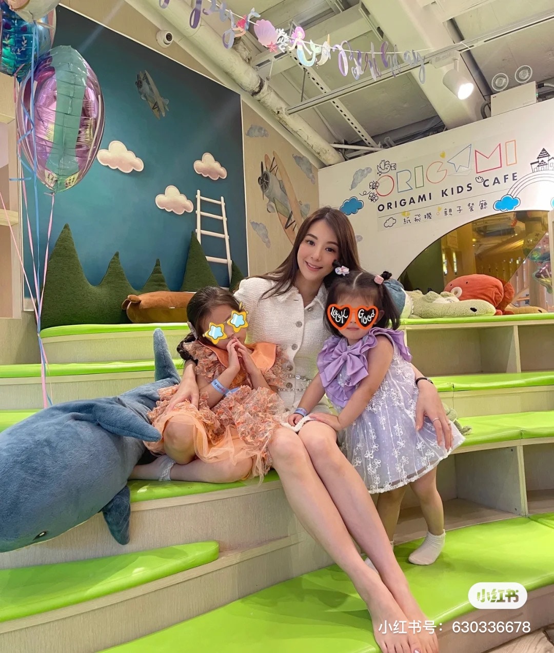 Moka與一對寶貝女兒最新靚相。(小紅書)