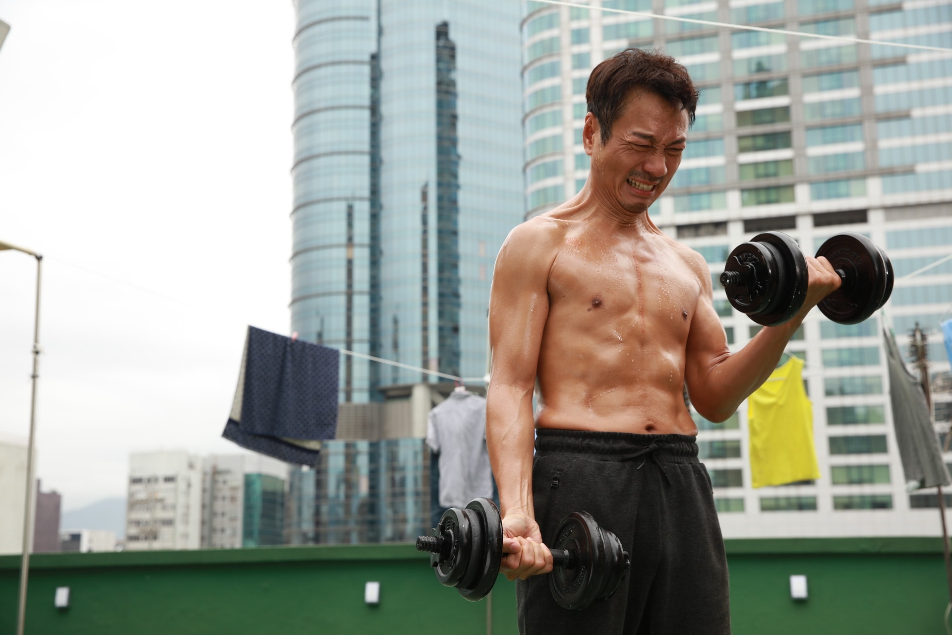 他在IG透露除了有節食外,亦會為拍戲進行重量訓練、武打訓練和練跑,更做到肌肉痠痛,「啲痠痛由對腳直射到上天靈蓋,不過做人嘅嘢,最緊要型,型得嚟仲要深藏不露。」阿聰又表示自己腰腳太攰,單是除皮靴就花了十幾分鐘。(IG@louischeung2013)