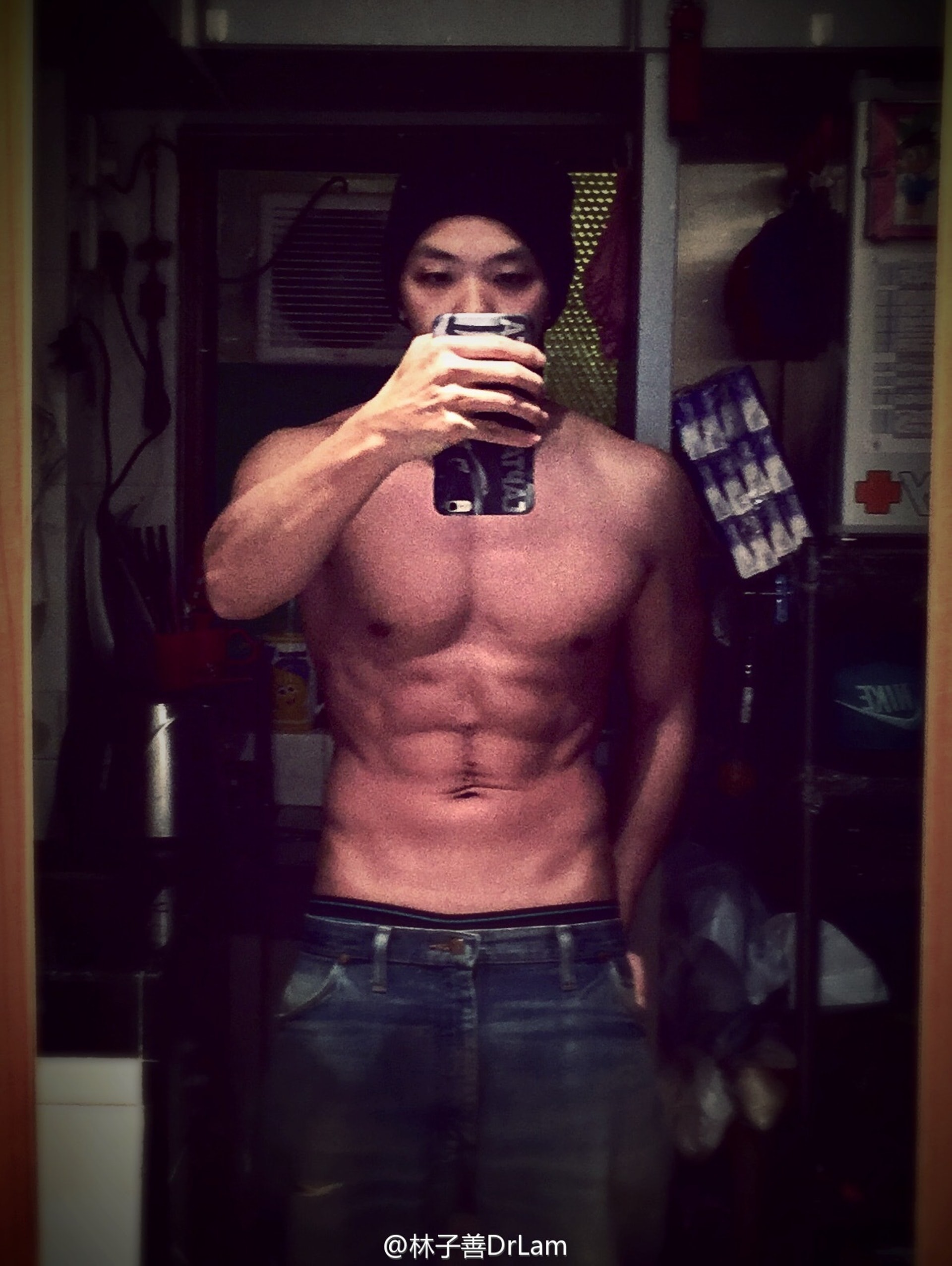 林子善本身不太高大,卻在拍攝劇集《怒火街頭》時有168磅體重,之後決心減肥仲變成大隻仔。林子善減肥方法是先打拳減磅,再做gym操肌肉,高峰期會一日做3小時運動,飲食當然是清淡之主,而且傍晚6時後不吃東西。(林子善微博圖片)