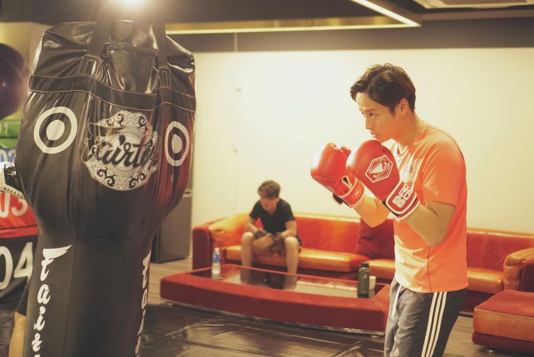 林子善本身不太高大,卻在拍攝劇集《怒火街頭》時有168磅體重,之後決心減肥仲變成大隻仔。林子善減肥方法是先打拳減磅,再做gym操肌肉,高峰期會一日做3小時運動,飲食當然是清淡之主,而且傍晚6時後不吃東西。(林子善微博圖片)