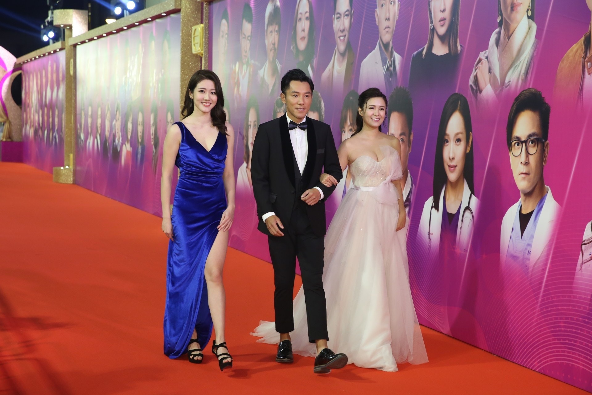 鄧佩儀的黑色拖地吊帶長裙來自香港本土品牌 Victor Chan Studio,雖然無太多特色,但都勝在簡單。