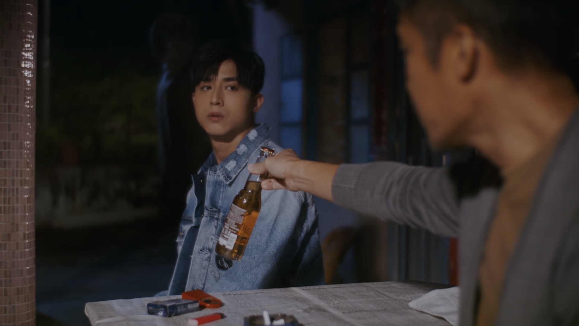 AK對自己非常失望,並將所有的不快發洩在好友梁仲恆身上。(《三個字》MV影片截圖)