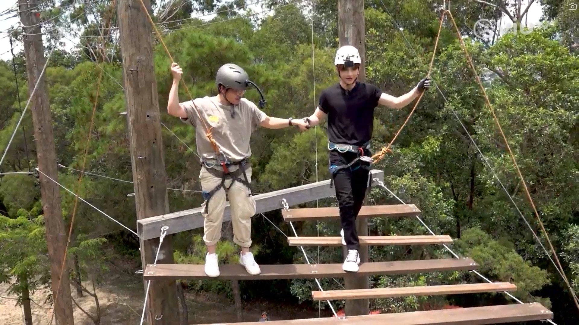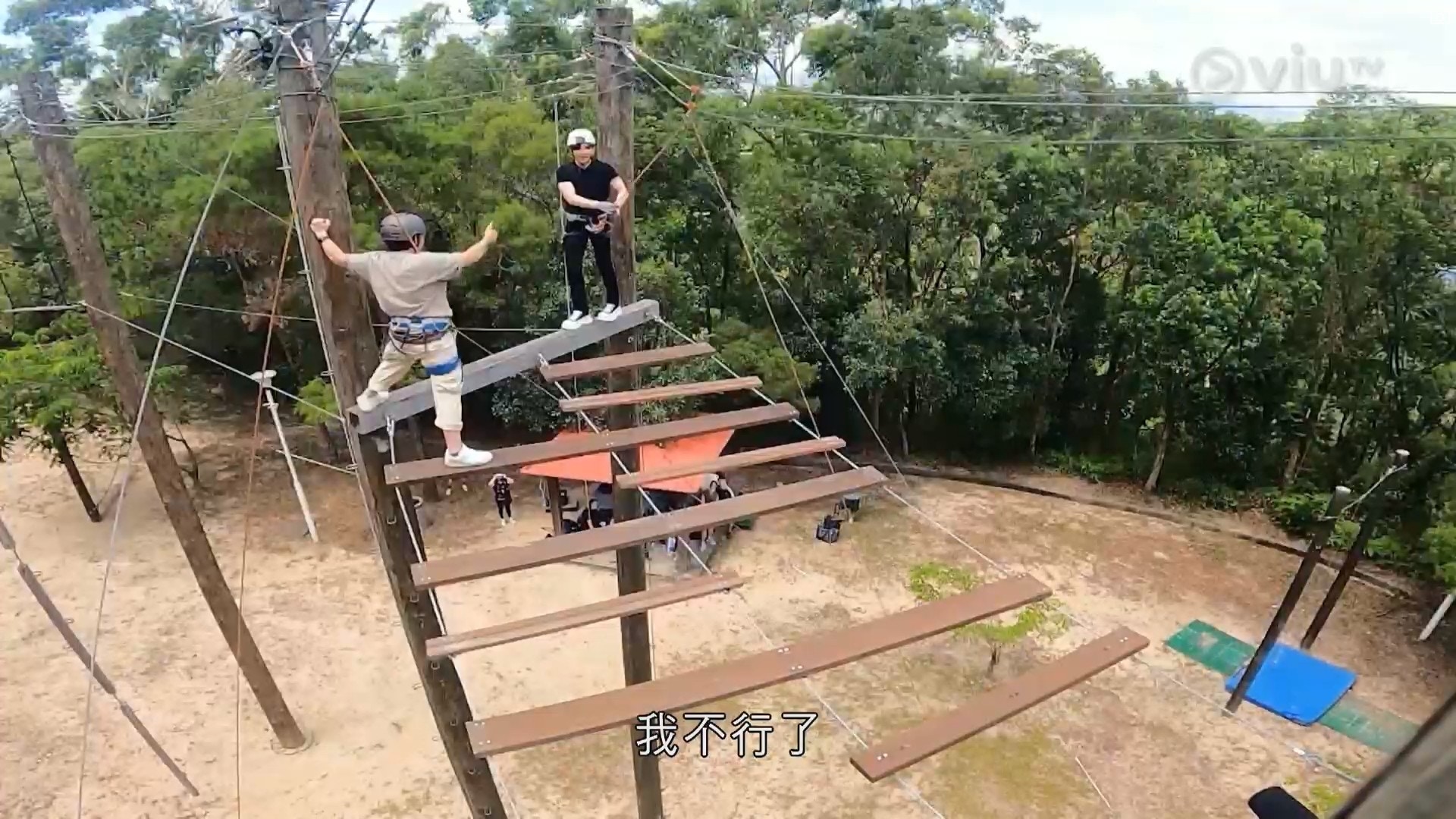 爬到上頂之後,天梯其實先算正式開始。雖然節目組全程安排教練陪伴在側,但魂魄唔見咗一半嘅Anson Lo堅係驚,唔係大叫「求下你幫幫手」、「求下你條繩唔好郁呀」,又或者自我安慰地表示「冷靜啲先」。不過好在最後佢都成功踏出第一步,並瞬間完成橫越天梯,之後仲好似無事發生咁話:「只要你踏出第一步,之後就好平坦。」不過,當Anson Lo準備重返地面時,佢就有少少尷尬咁話:「條安全繩chok到我重要部位」,教練就好輕鬆咁話:「男人之痛係咁架啦。」而唔少網民都即時留言表示:「大支嘢係麻煩啲。」