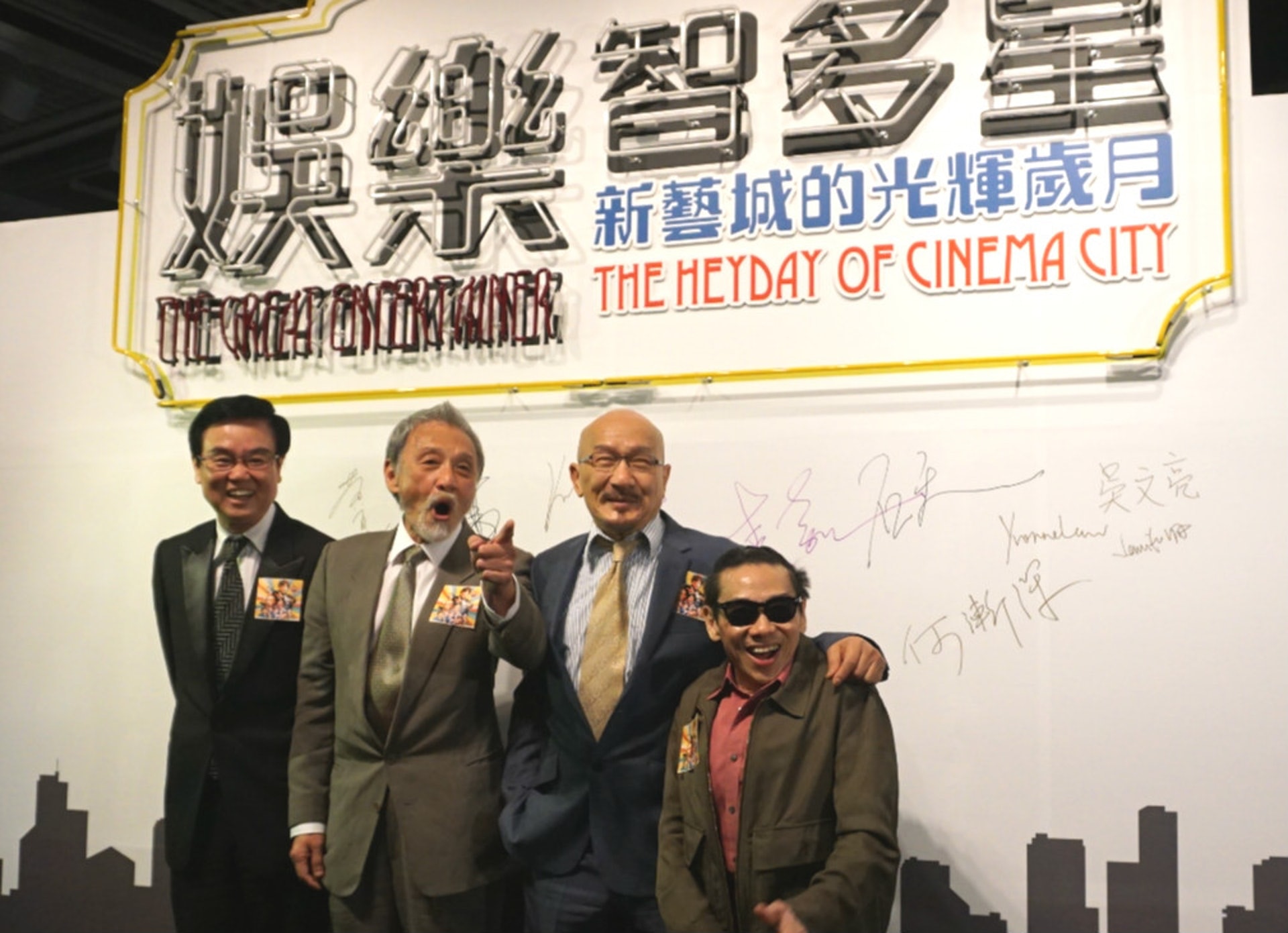爾冬陞竟然可以邀請到「新藝城奮鬥房七人組」(獨欠徐克)坐在台中央出場,更播放他們公司的ID,那股氣勢,也是近年難得一見。(電視截圖)