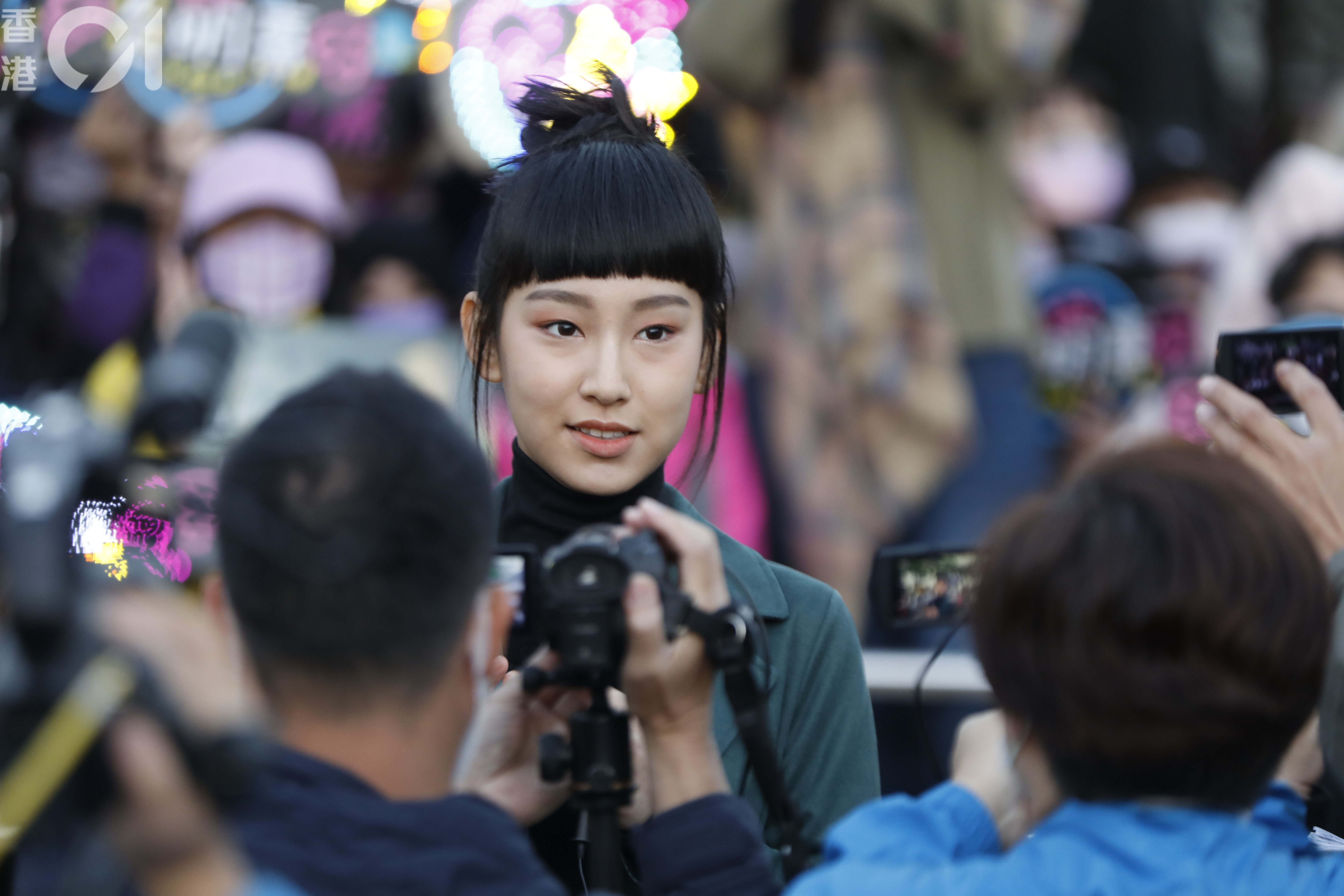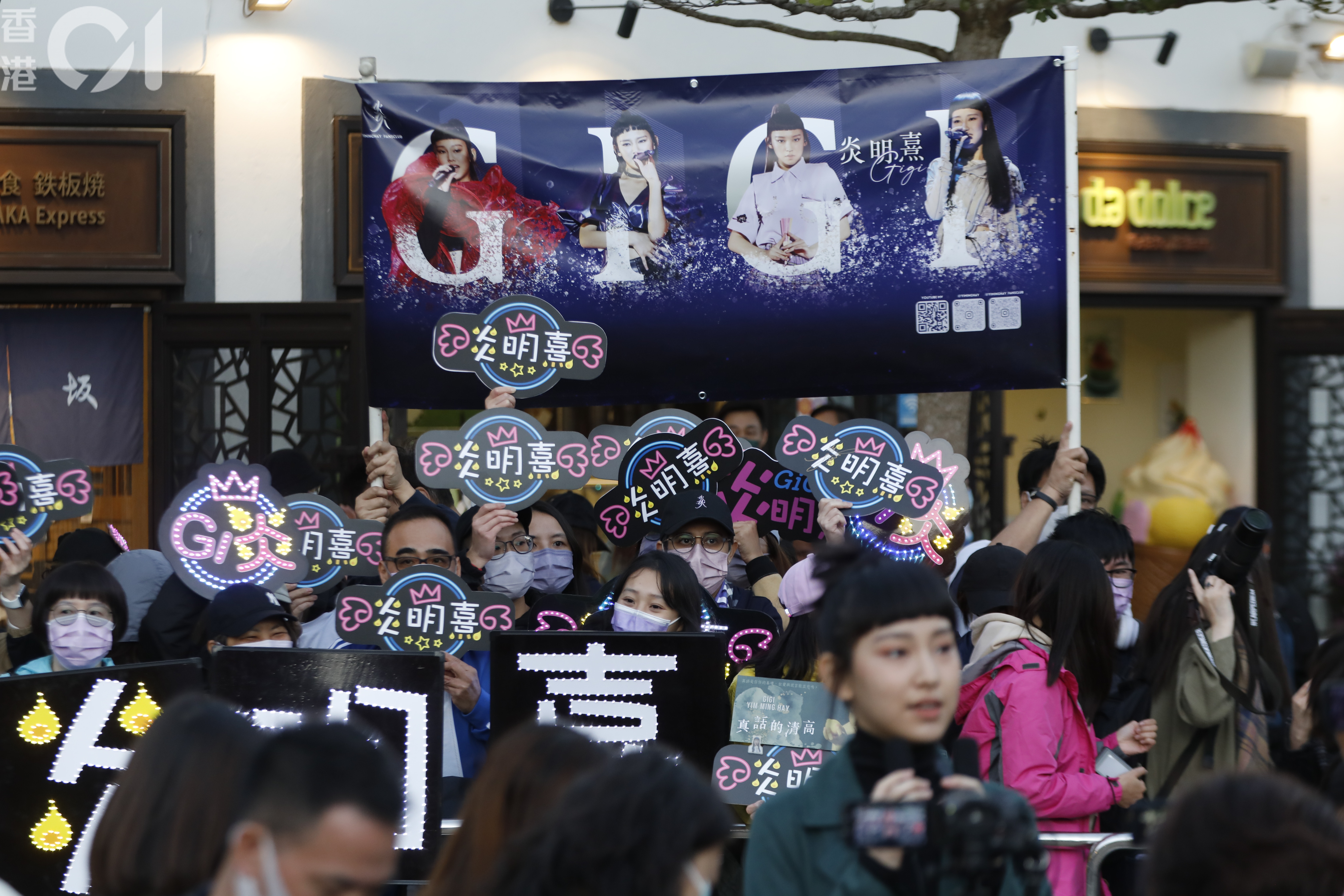 Gigi來到現場一刻,「Gi炎粉」才現身圍欄外。(劉傳謙攝)