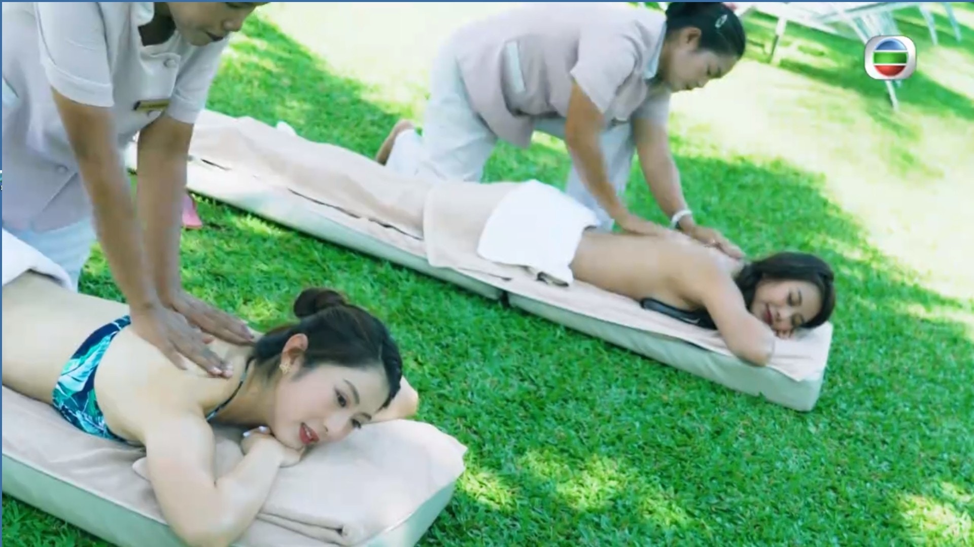 何泳芍和謝芷倫體驗戶外Spa。(《3日2夜》截圖)