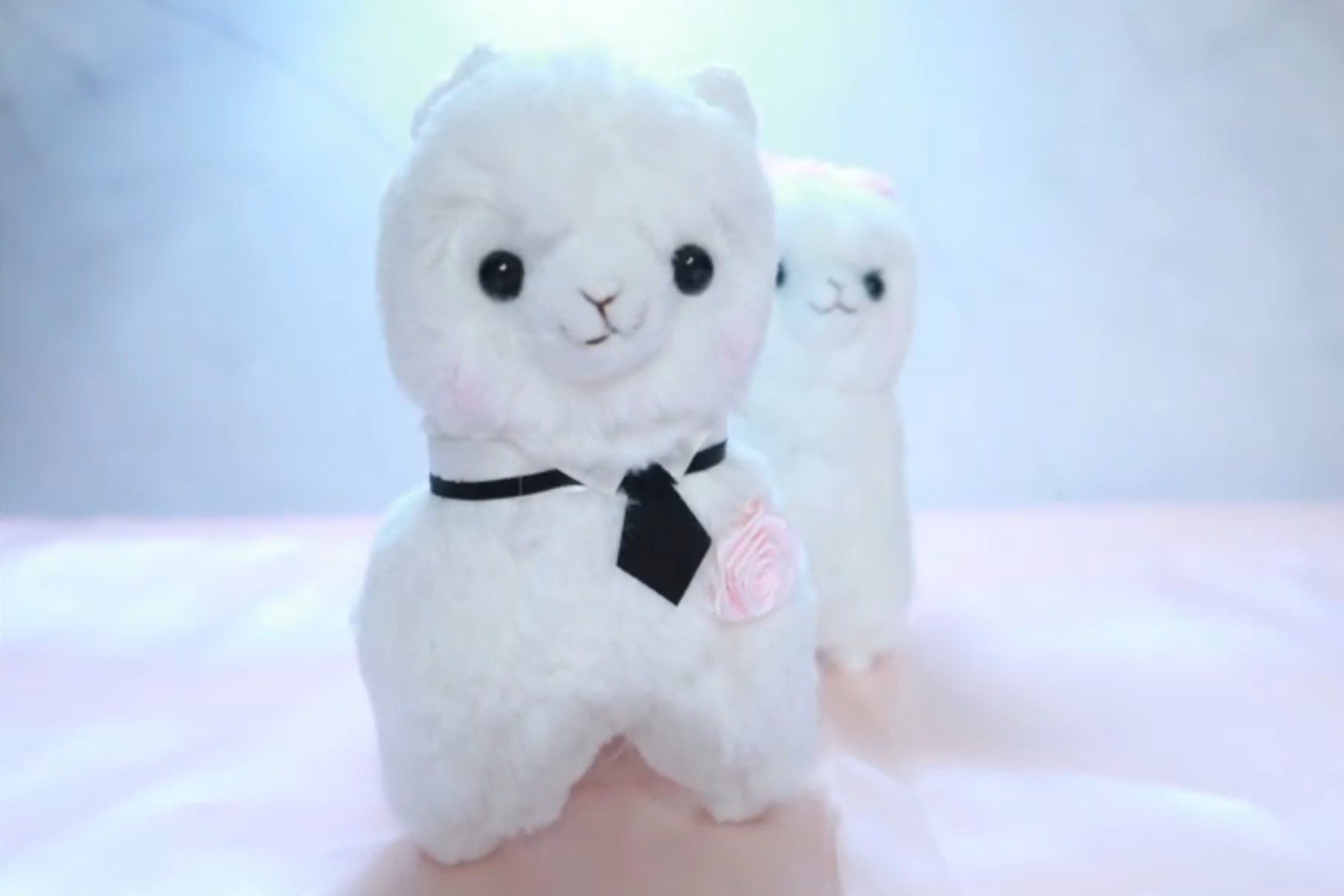 片中所見是一對分別以頭紗同領呔打扮的羊駝公仔,猶如一對新人一樣。(影片截圖)片中所見是一對分別以頭紗同領呔打扮的羊駝公仔,猶如一對新人一樣。(影片截圖 ...