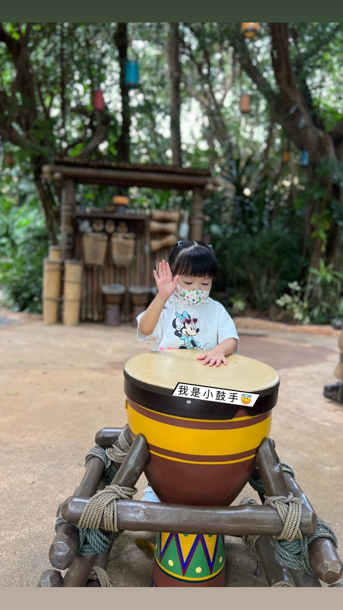 近日又有藝人家庭去迪士尼過family day,陳展鵬老婆單文柔 (Phoebe)今日大晒一家三口去迪士尼玩的家庭照,兩歲的女兒「小豬比」陳諾瑤(Quinta)原來一直希望可以「要去迪士尼100次」,一日講足3次,今次終於如願以償。小豬比平時充滿表演慾,鍾意唱歌跳舞,今次入到迪士尼打鼓打得好有興緻,與爸爸媽合奏。不過最搶眼的不是活潑可愛相,而是她的一對耳仔,極似迪士尼人物史迪仔,又大又尖,下年萬聖節要扮鬼扮馬可以考慮cosplay史迪仔。