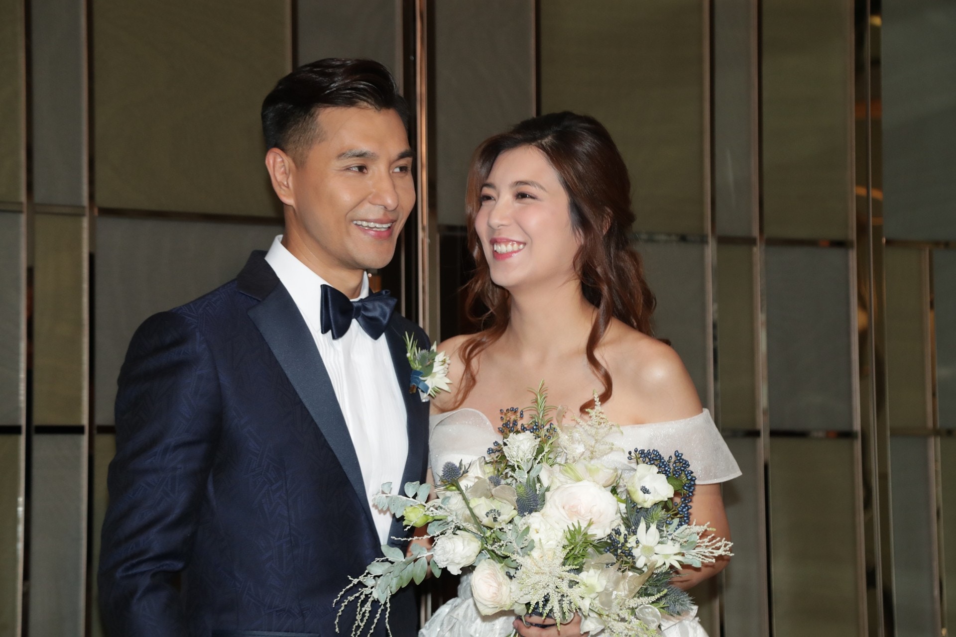 陳展鵬與單文柔於綜合海、陸元素的婚禮上修成正果。(Vcg.com)