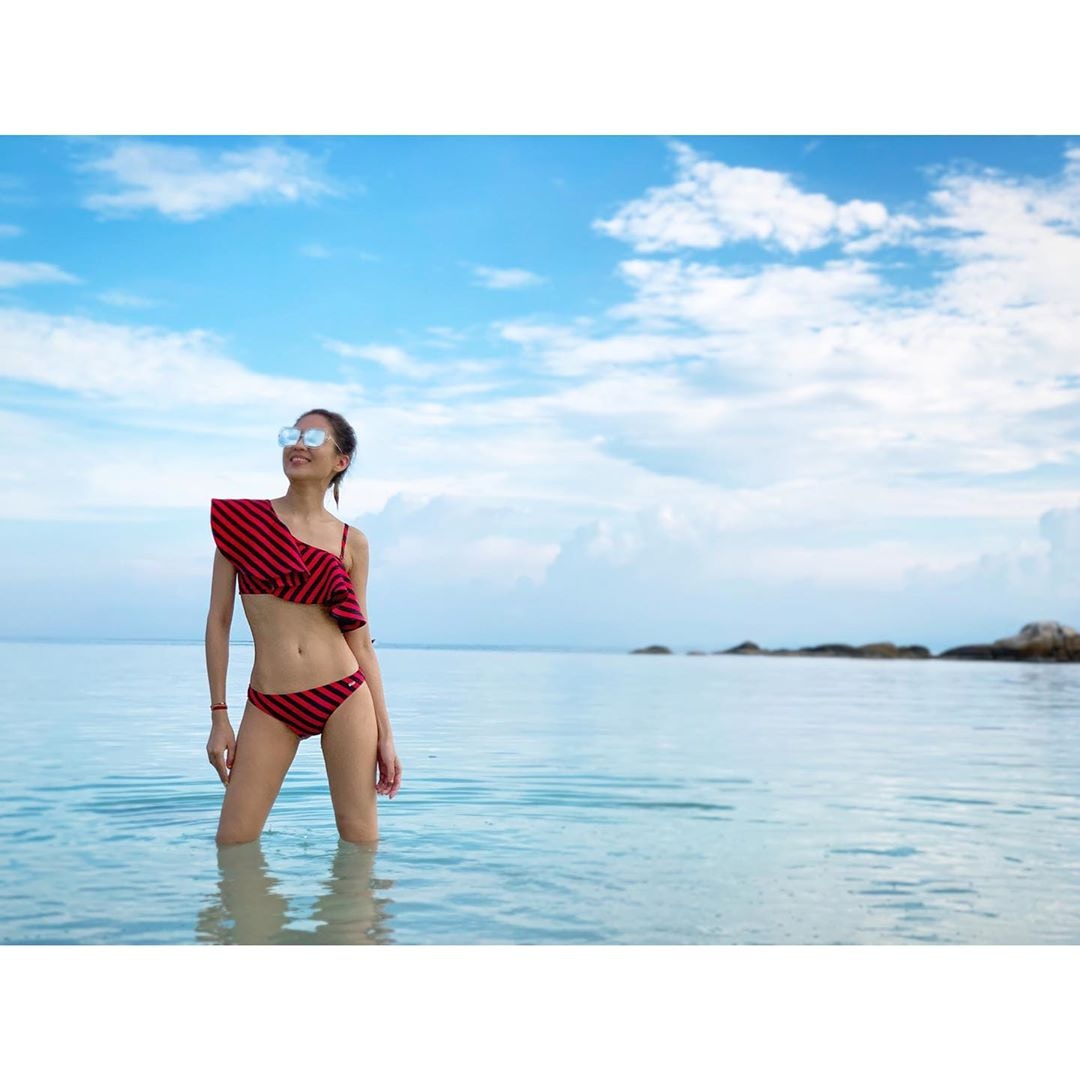 三位(左起︰陳凱琳、高海寧、陳敏之)的泳衣都好有80年代Feel,緊貼現在的懷舊潮!(Instagram@sammkoling)