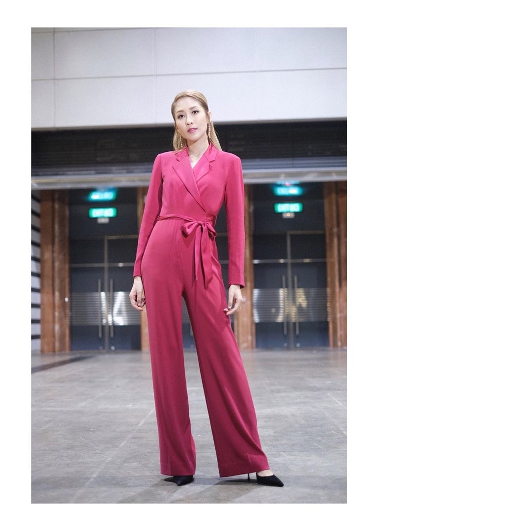 陳敏之在另一活動時亦示範了紅色配白色的穿搭。(sharonchanmanchi@Instagram)