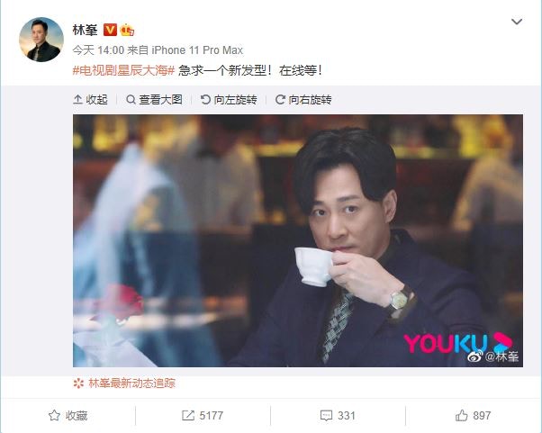 林峯以五五分界新造型亮相,成為網友熱話。(微博:@林峯)