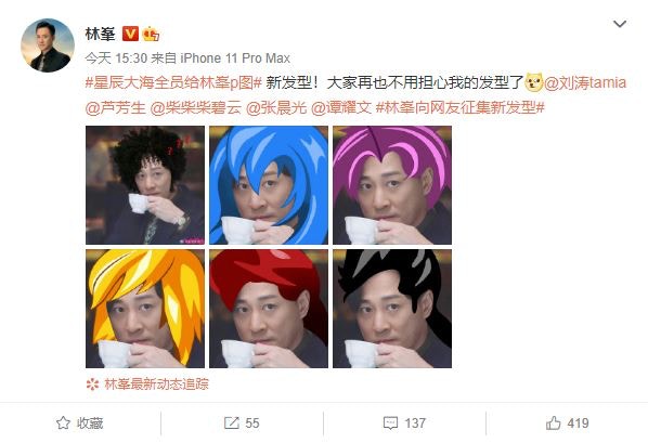 林峯發微博笑稱要徵求新髮型。(微博:@林峯)