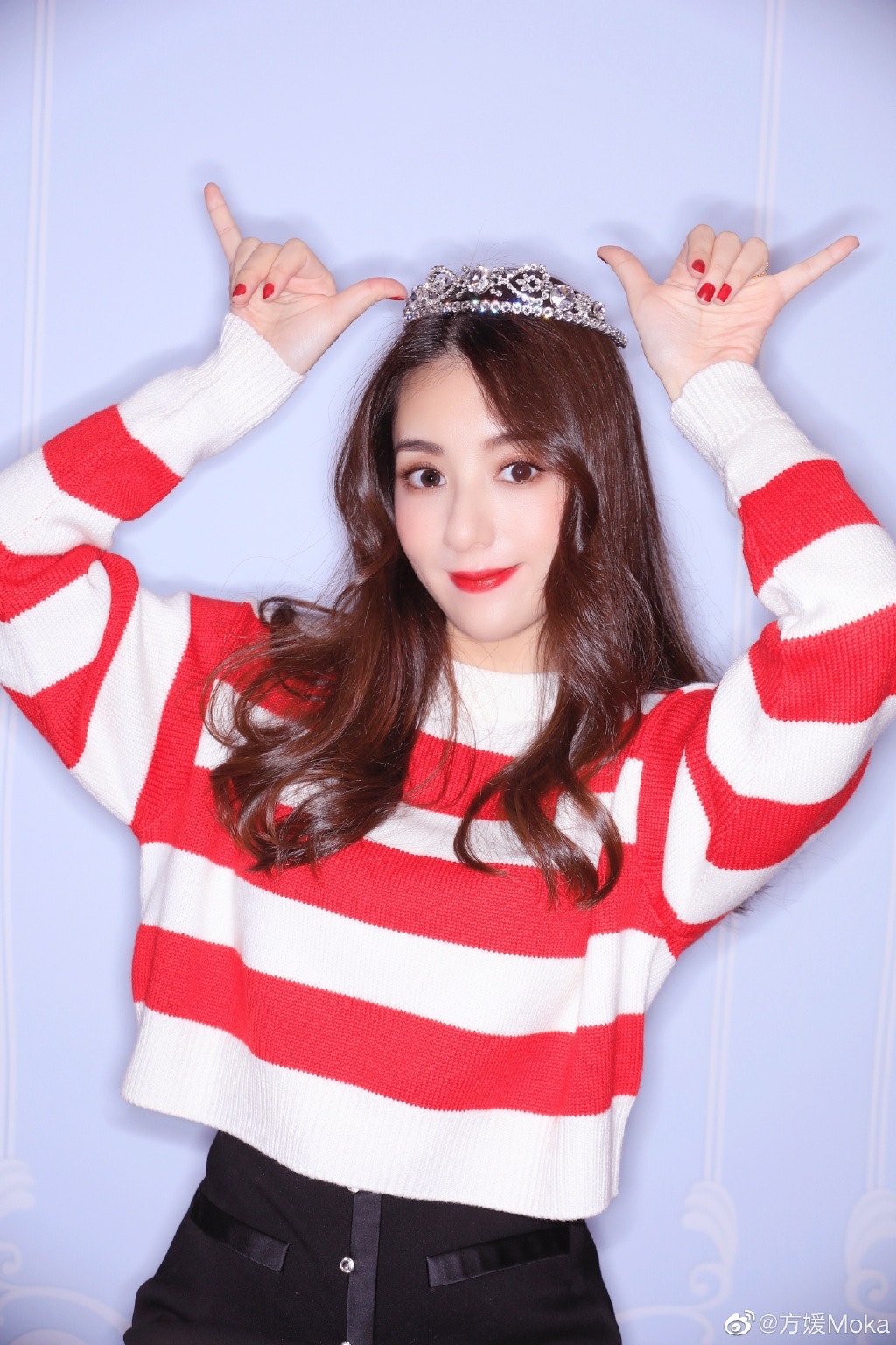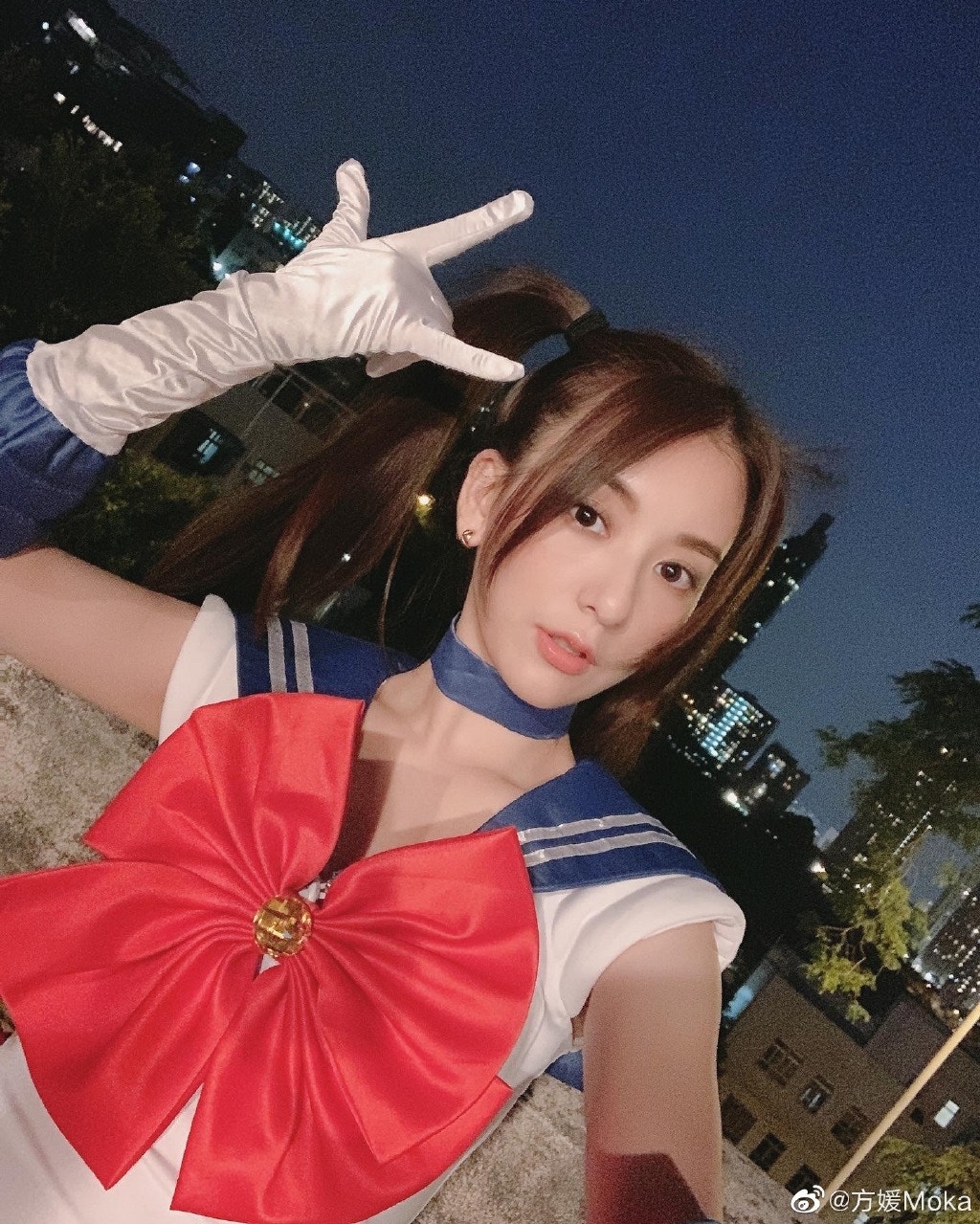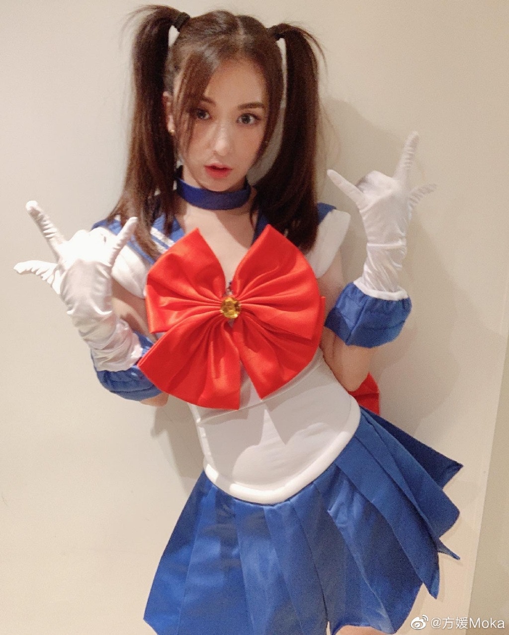模仿月野兔大擺Pose。(微博@方媛Moka)