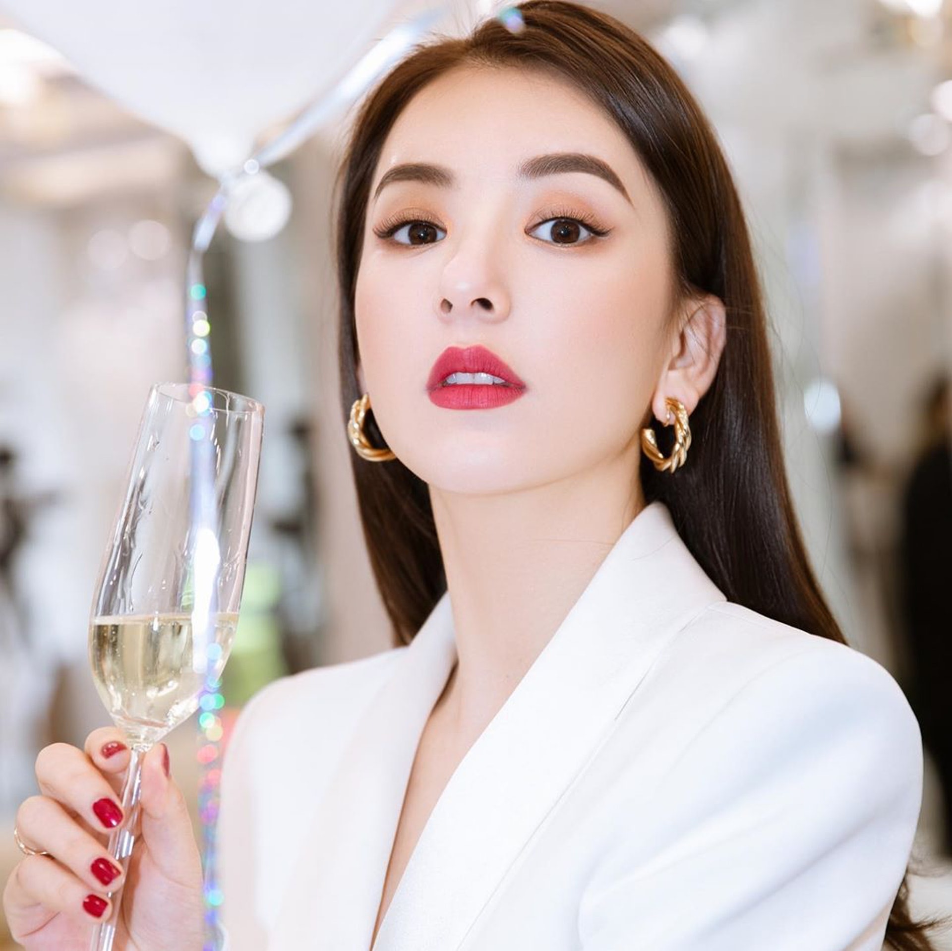 妝容精緻。(IG@@mokafy)