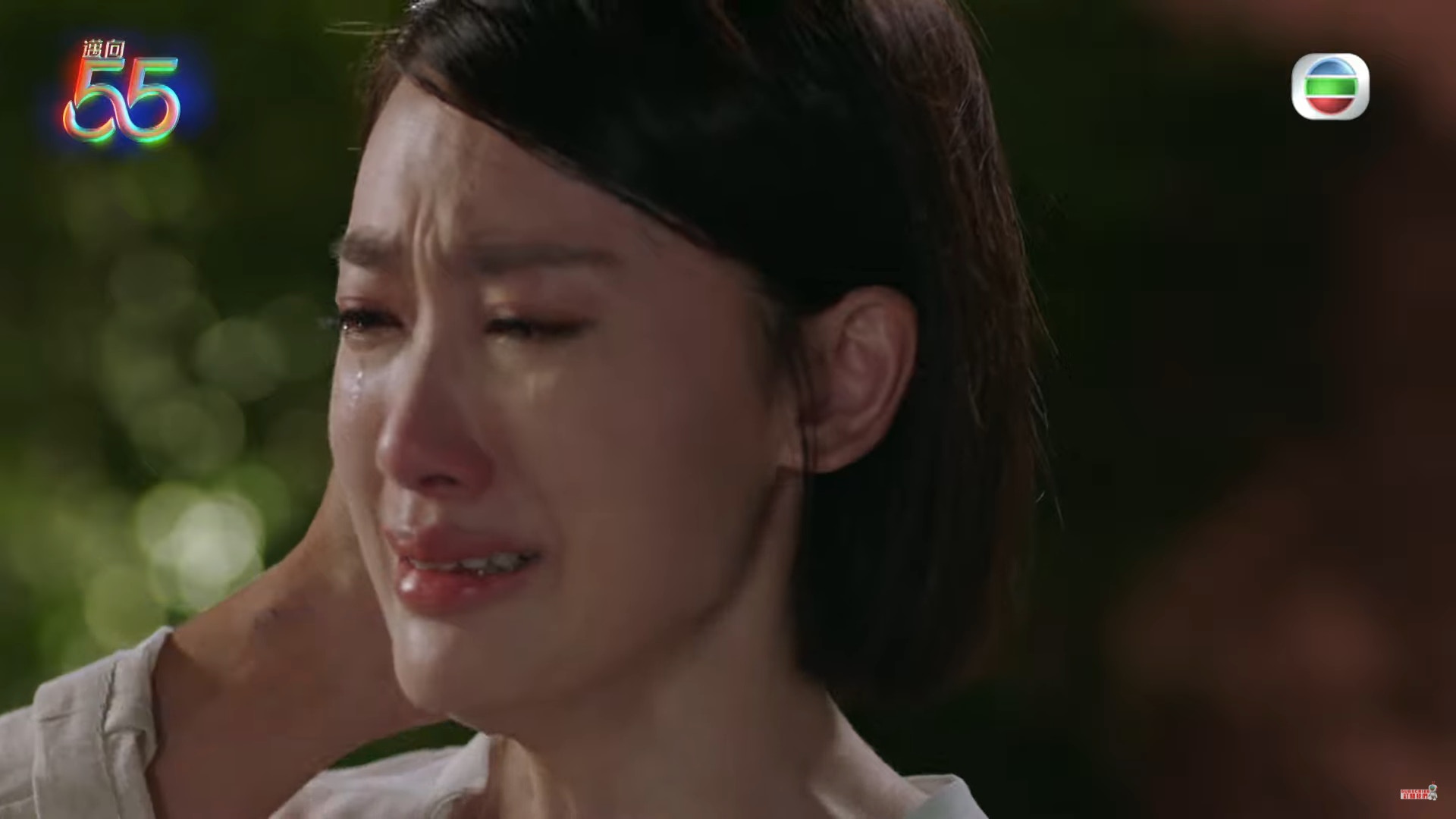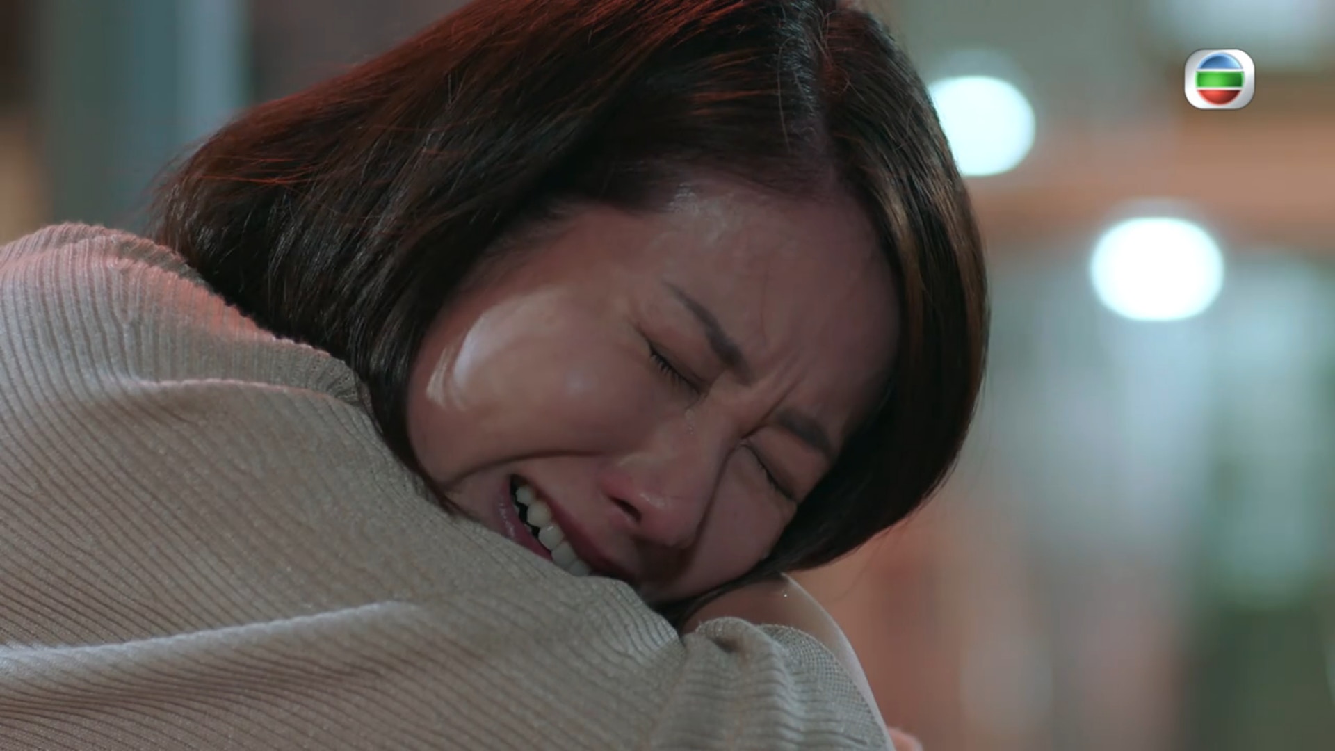 她從茫然若失到攬住自己,卸下堅強的偽裝,爆喊出來。(劇集截圖)