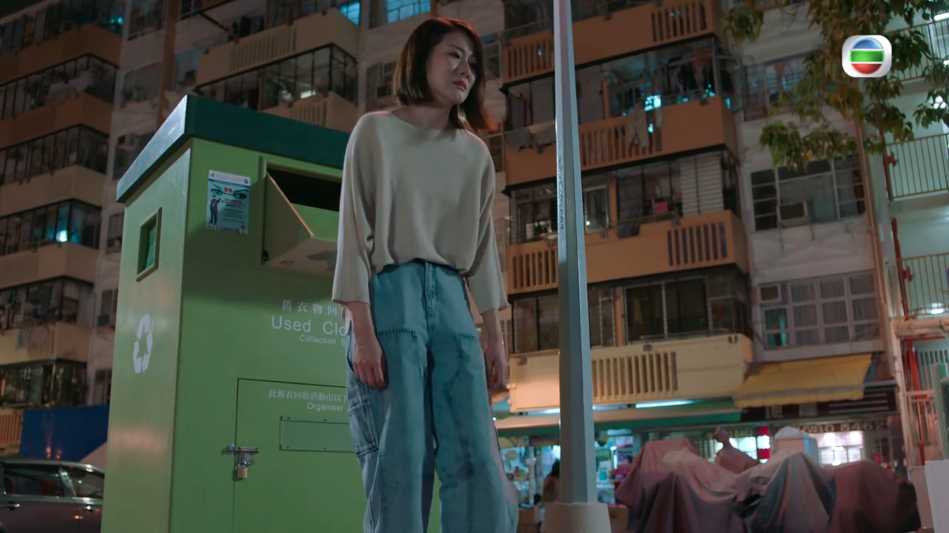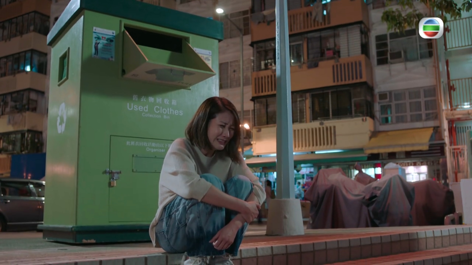 鄧佩儀飾演張旻。她丟失了母親的遺物,在街上崩潰喪喊,這段情節最有發揮空間。(劇集截圖)