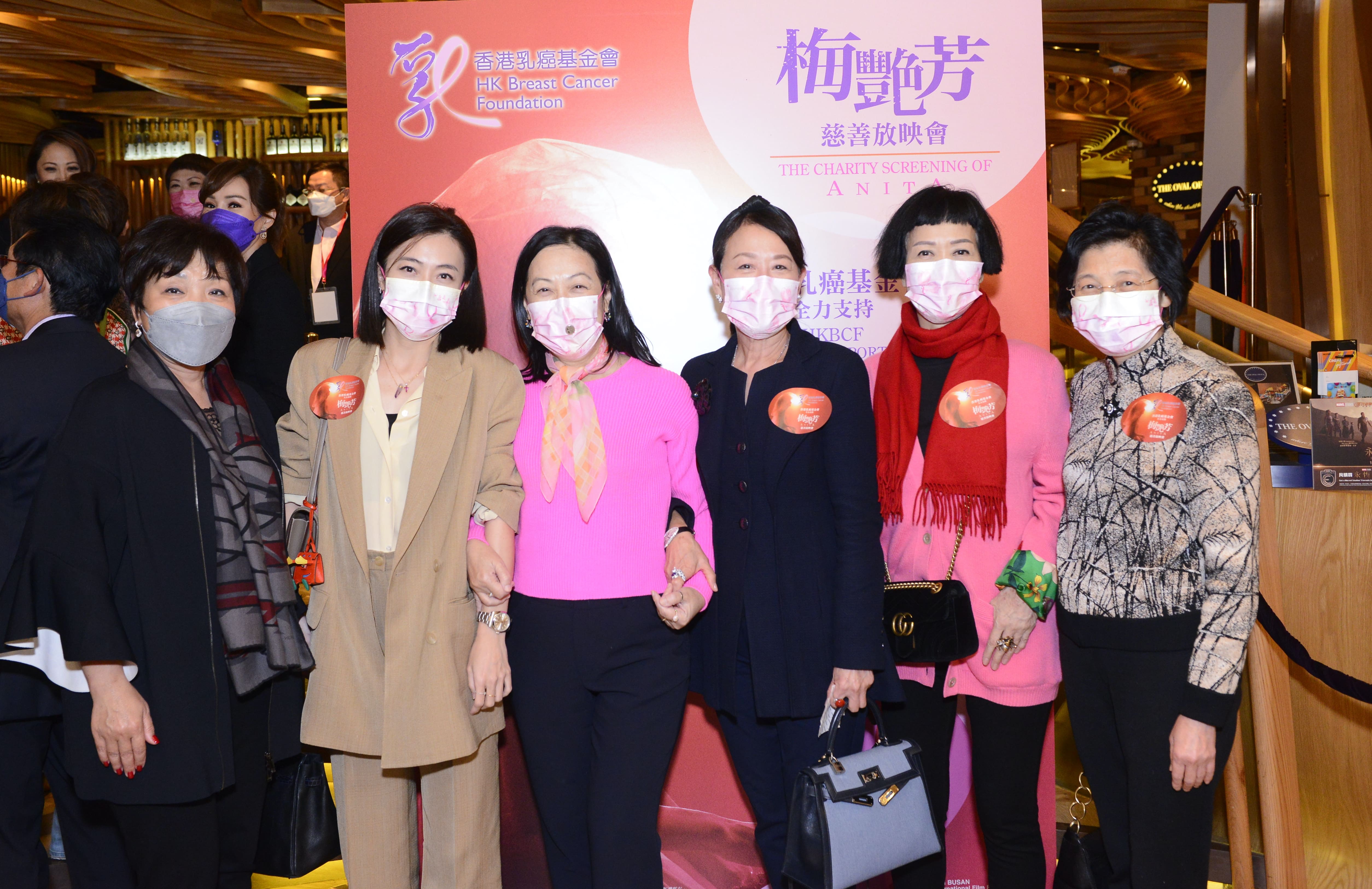 香港乳癌基金會《梅艷芳》慈善放映會在星光熠熠氣氛當中圓滿舉行。基金會榮幸邀得社會各界人士蒞臨支持,包括基金會大使Ms. Vivienne Tam;嘉賓高永文醫生伉儷、陳凱韻小姐、施永青先生、朱沃裕及李月華伉儷、楊傳亮BBS太平紳士、胡定欣小姐、陳敏之小姐、汪詩詩小姐、鍾麗淇小姐、周美鳳小姐、羅霖小姐、張玉珊小姐、陳曼娜小姐、劉倩婷小姐、楊小娟小姐、王玉環小姐等。一眾明星名人以行動宣揚粉紅力量,祈盼提高大眾對乳癌的關注,及早了解風險,並與身邊朋友互相提醒定期做乳健檢查,社區攜手對抗乳癌。
