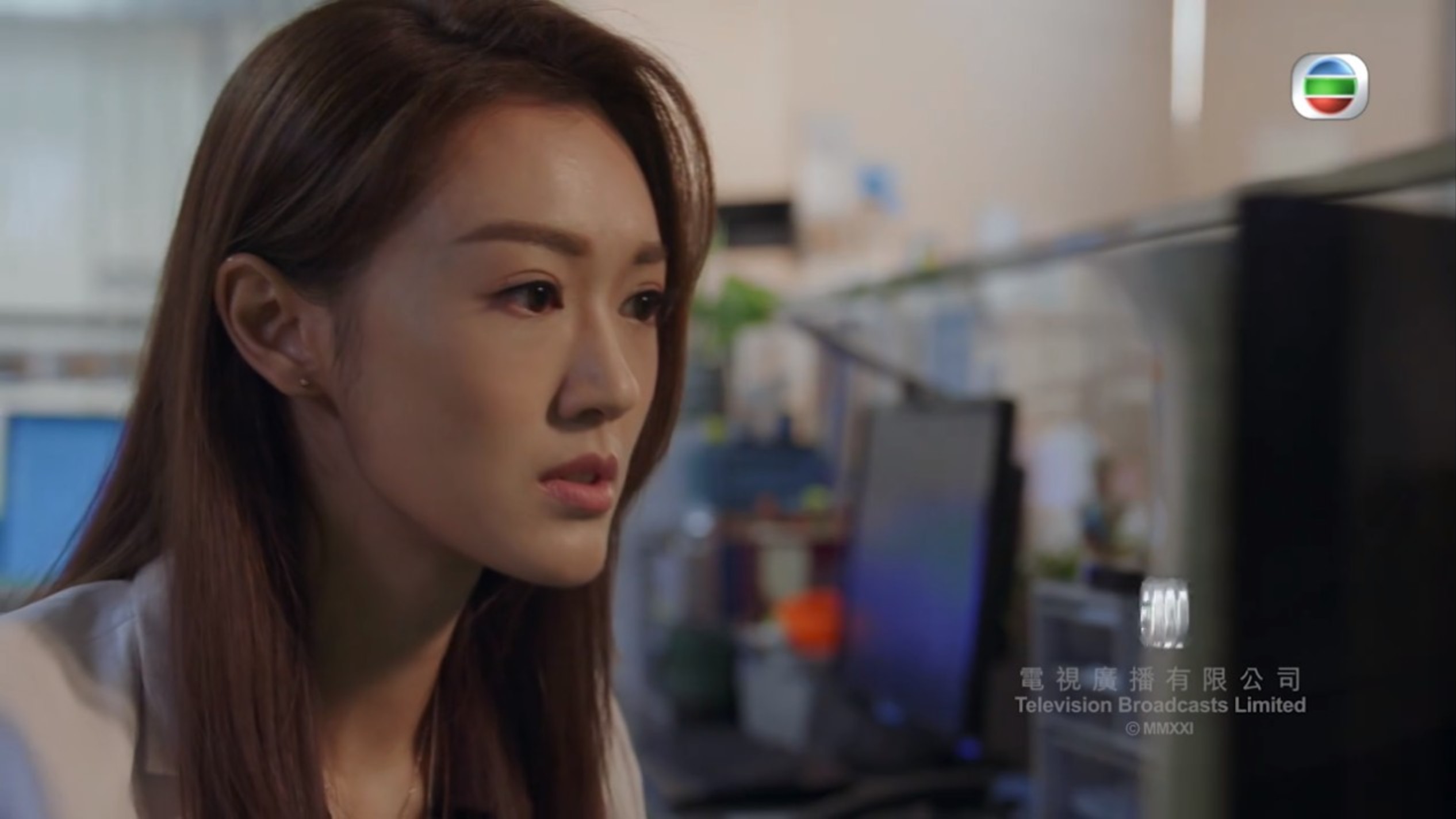 姜麗文與鍾嘉欣在手術室外有場對手戲,一口氣讀出很的對白,還要一邊哭一邊說,但姜麗文卻處理得相當自然、恰到好處,這次真的是給到觀眾驚喜。表現中上。(影片截圖)