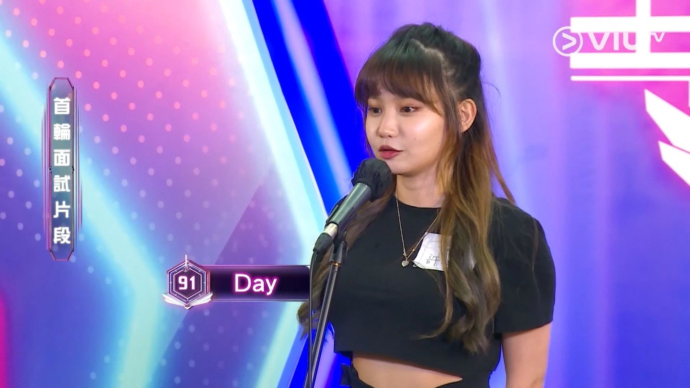 在預告片入面,19歲的Day在面試時,講到自己有半年在韓國做練習生的經驗,更自詡自己是「香港Jennie mix Lisa」,之後她解釋︰「我話自己似Jennie同Lisa,係啲人咁講,唔係我自己講!」之後表演跳舞又「企唔穩」,唱歌連唱什麼也不記得兼忘詞,表現強差人意,不過她在排舞時每次也相當落力和勤力練習,所以在記者會上終於被人留意到。在正式比賽時,她表演跳唱,表演算是有壓台感,連導師許廷鏗(Alfred)和梁祖堯都說︰「佢把聲其實唔壞!」、「我想要呢啲啊!」其實Day本身除了有跳Kpop Cover和做過練習生外,她也曾殺入《2021香港區K-POP舞蹈比賽-CHOOM》總決賽,所以有一定的實力!