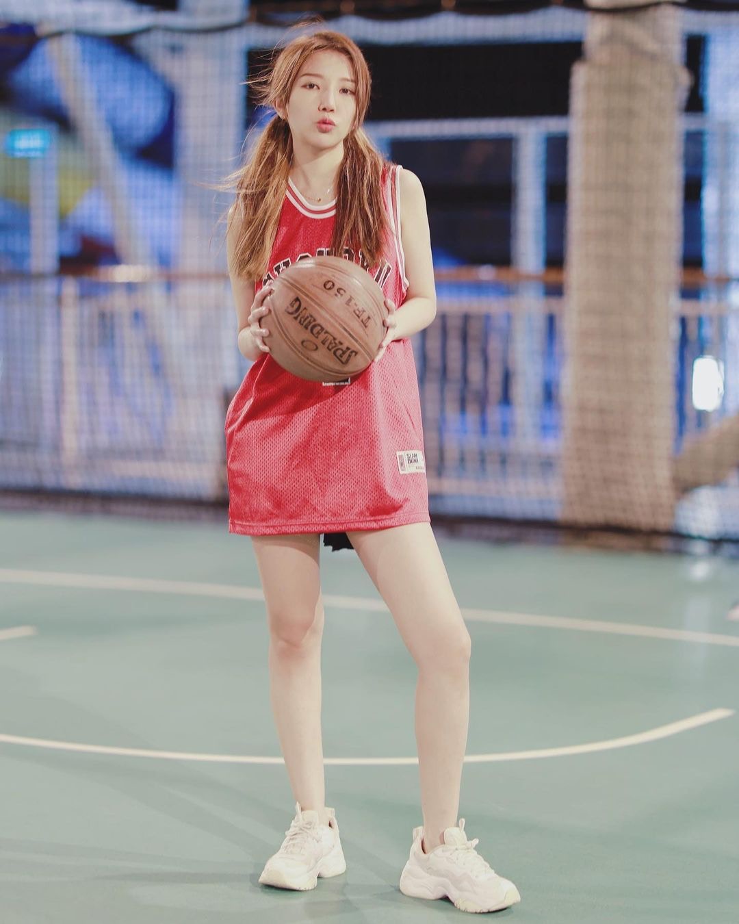 Caca大玩下衣失蹤籃球服Look。(Instagram/@jesslty213)