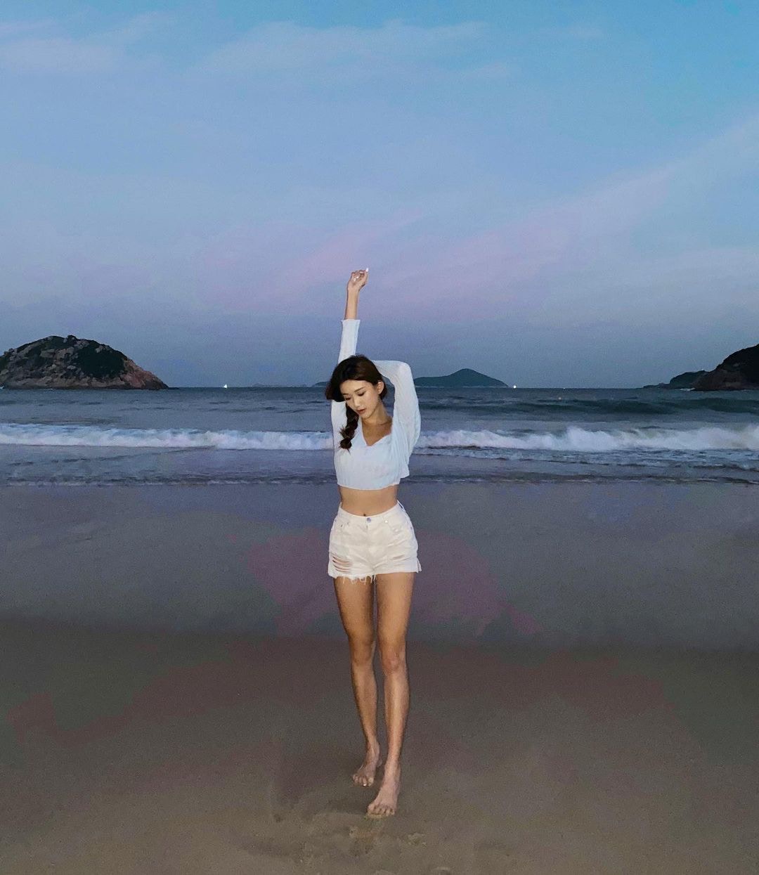 Carina海邊曬長腿。(Instagram/@carinalxt)