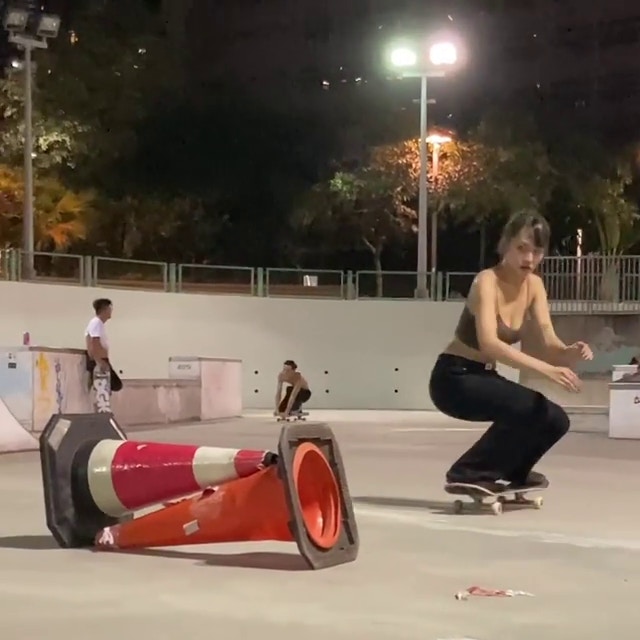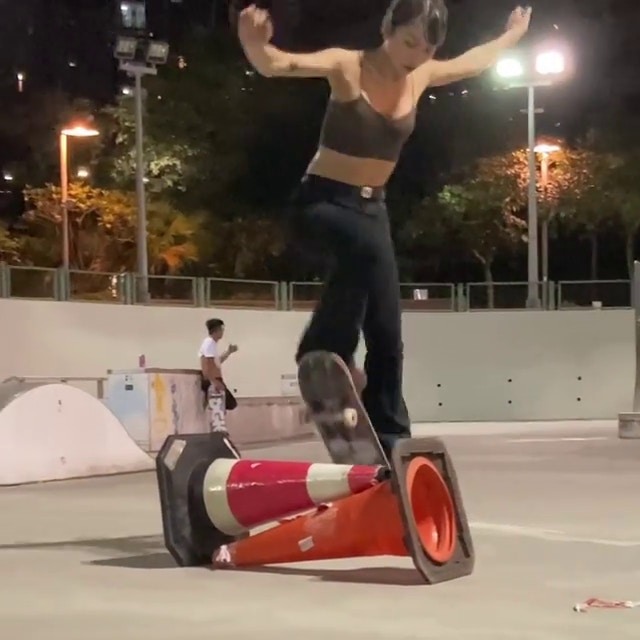 東東吊帶Look玩滑板好養眼。(Instagram/@jazzicabbx)