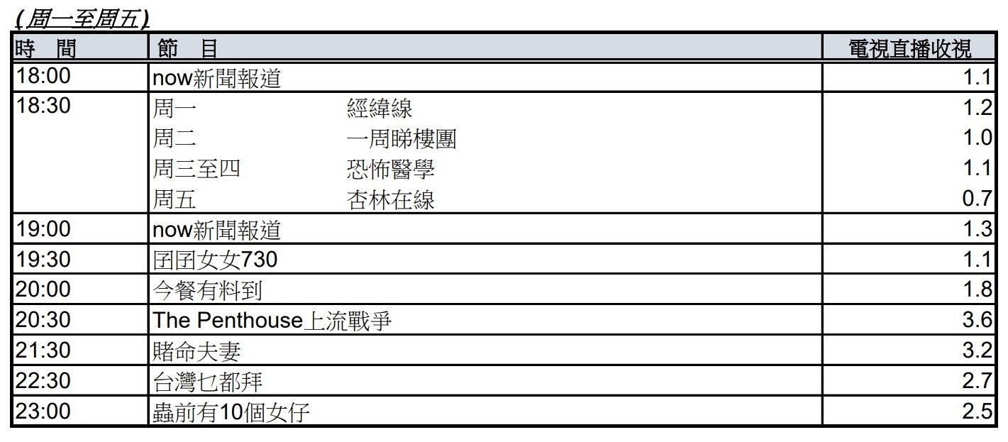 ViuTV星期一至五