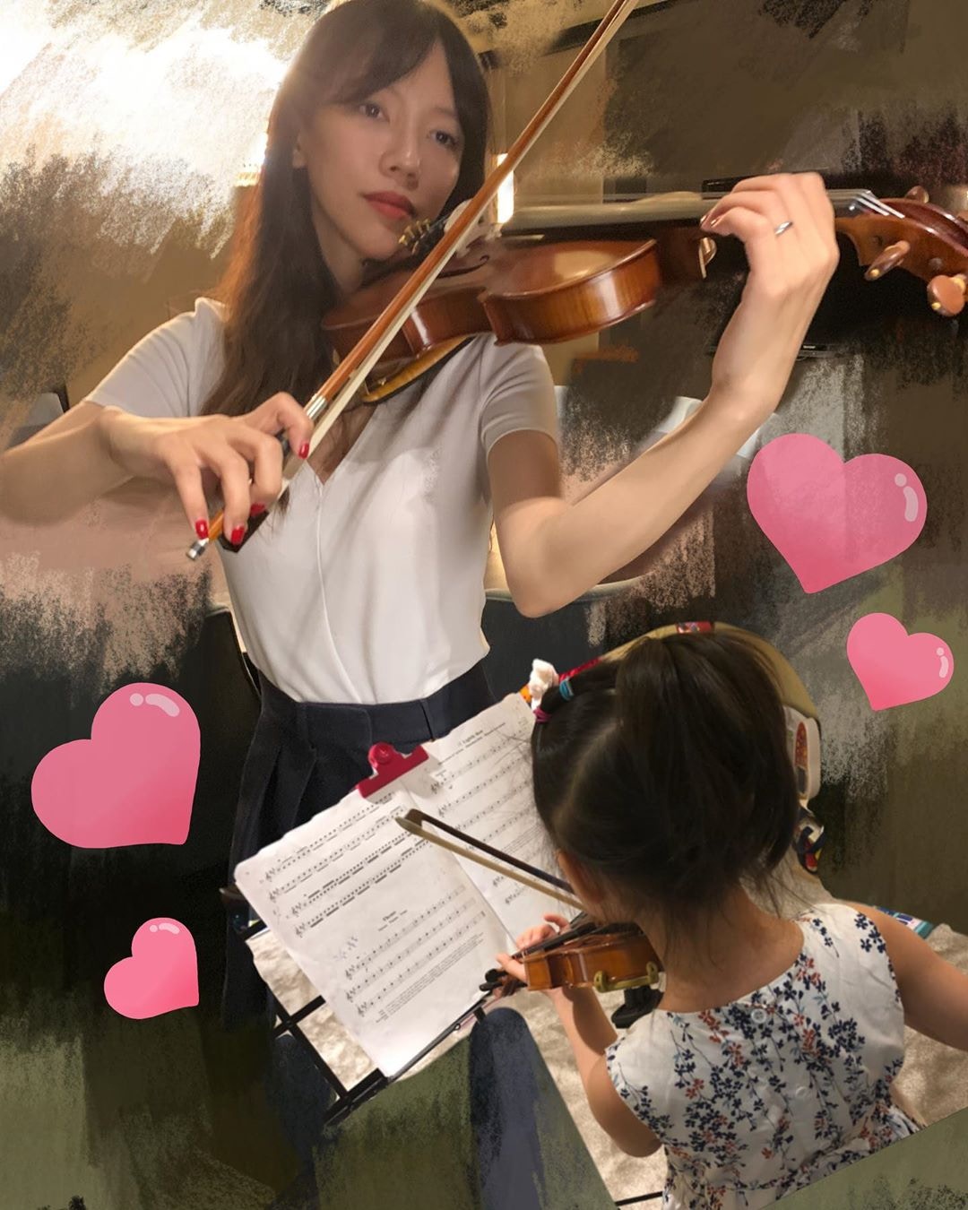 李靚蕾上載同囡囡一同拉奏小提琴嘅照片。 (IG:jl.leilei)