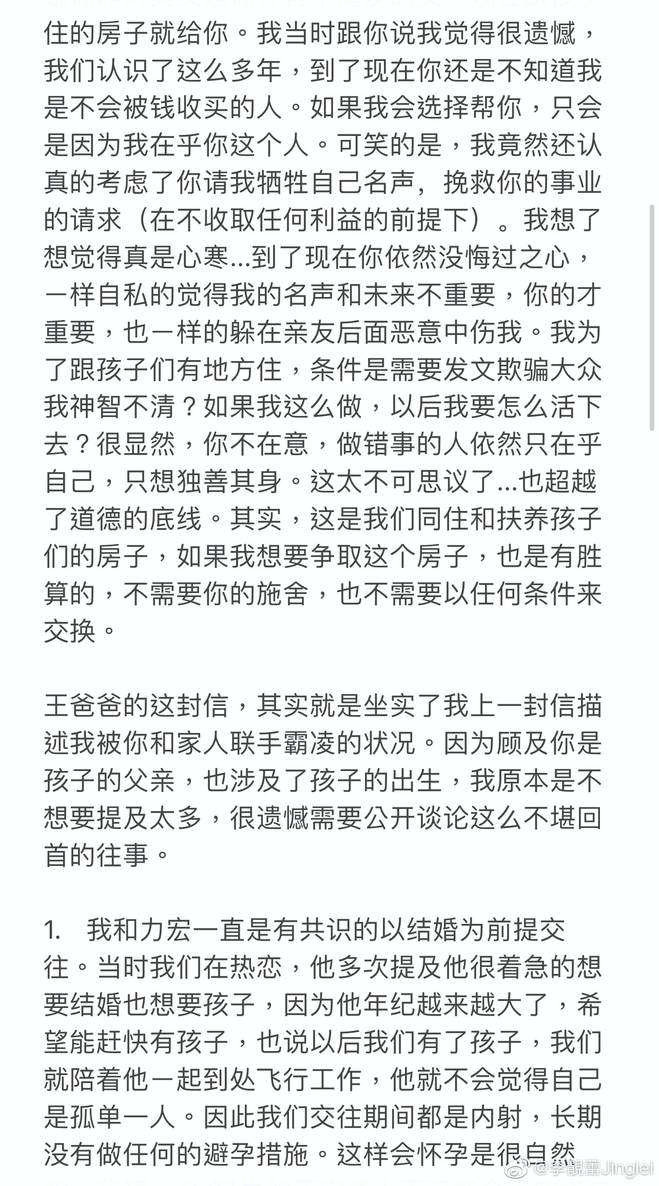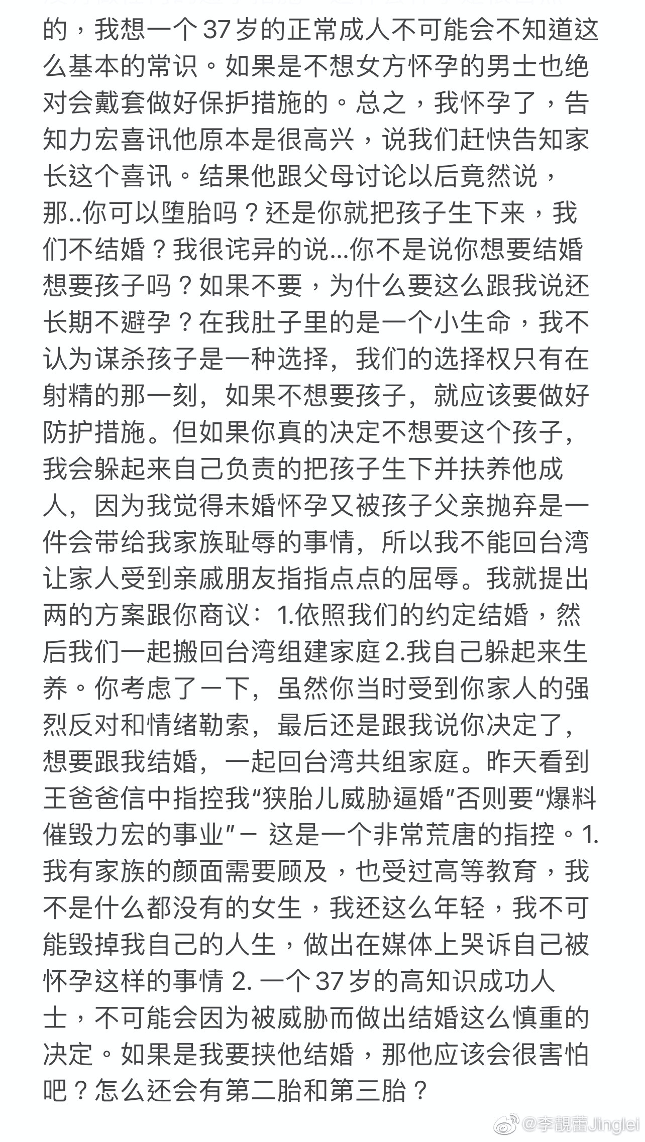 王力宏日前(15/12)被爆與李靚蕾離婚後,遭李靚蕾毀滅式爆料盡揭他渣男的一面,今日凌晨王力宏爸爸親撰信反指控她當年借肚迫婚等惡行,李靚蕾隨即於今早七 ...