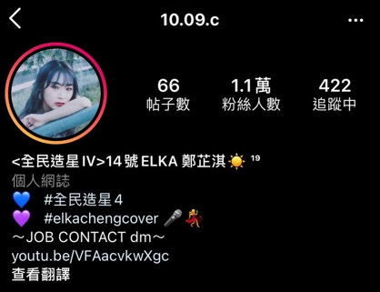 Grace又說自己享受演戲,不過想渴望在舞台上演出自己音樂作品。她點名讚Marf(邱彥筒)、馬欣(馬彩欣)及咖喱(黃雅慧)三位《造星IV》參賽者,又留tag「獨立歌手或女團夢」似乎是鼓勵人之餘,亦有打算勉勵自己。有人就留言附和:「唔知點解我睇果時有諗起你,如果你參加,我覺得你一定會係大熱,好似 Marf 咁受歡迎。」