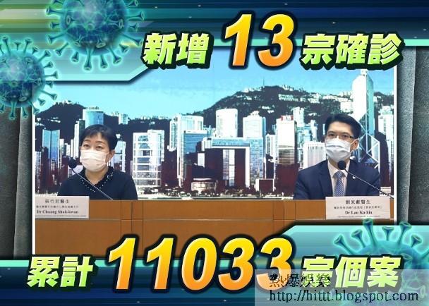 新冠肺炎疫情持續,衞生署衞生防護中心傳染病處主任張竹君公布,今日(2日)新增13宗確診個案,涉及5男8女,年齡介乎18至83歲,本港累計11,033宗 ...