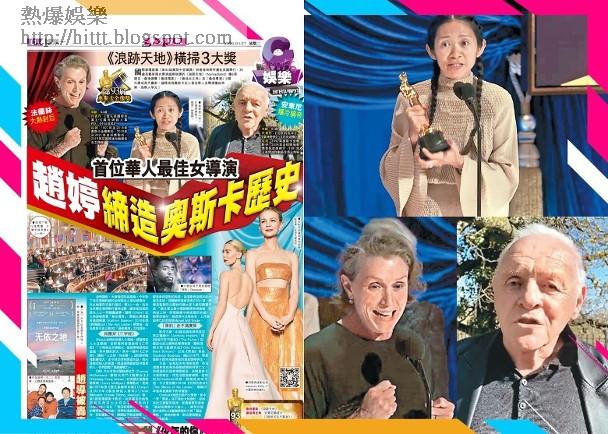 國際影壇盛事《第93屆奧斯卡金像獎》於香港時間昨晨在美國舉行,39歲美籍華裔女導演趙婷執導的《浪跡天地》(Nomadland)獲6項提名,最後連奪「最 ...