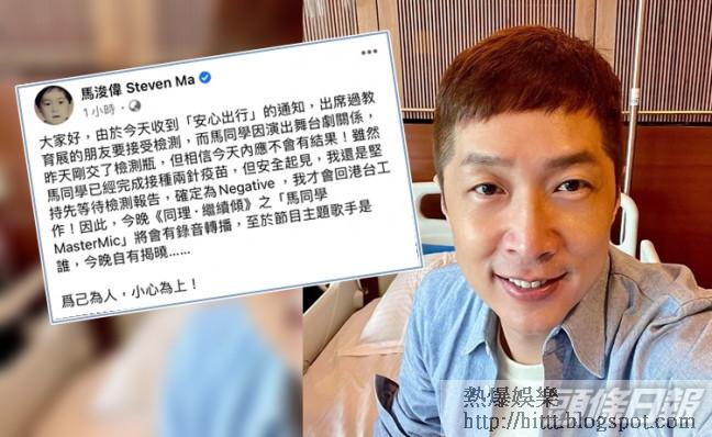 曾與確診女子同處教育展 馬浚偉打完兩劑疫苗仍做檢測 #馬浚偉