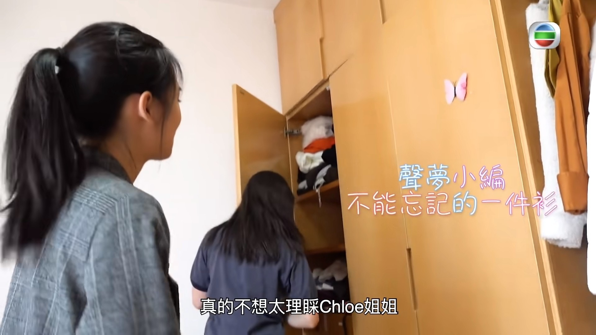 梳化後的木櫃放滿Chantel的童年照。(影片截圖)